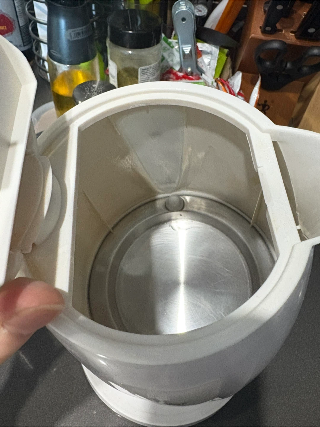 Selling a Sunbeam electric kettle. It has a 1.7L capacity and a clear water level indicator. It works perfectly. A little bit of discoloration inside which you could try clean with vinegar