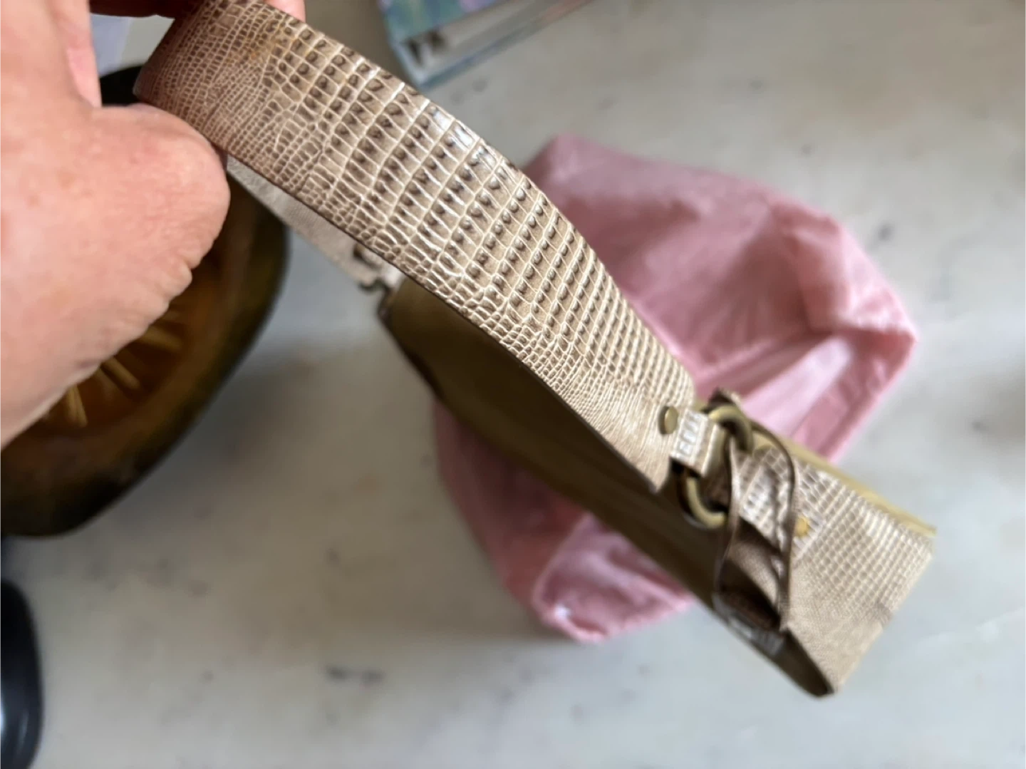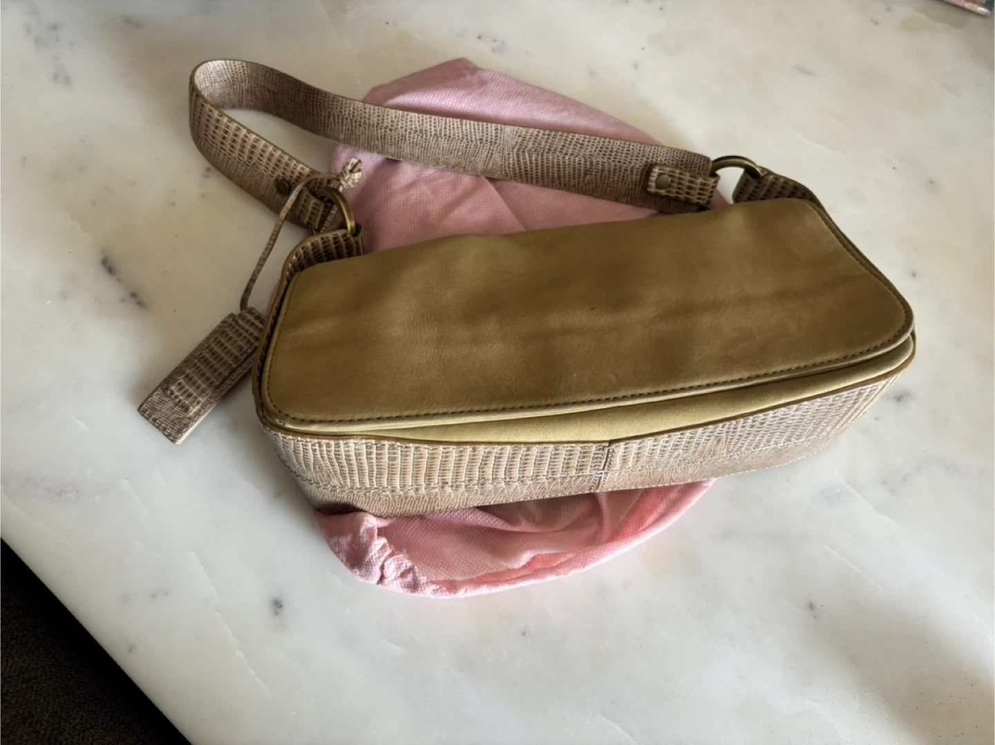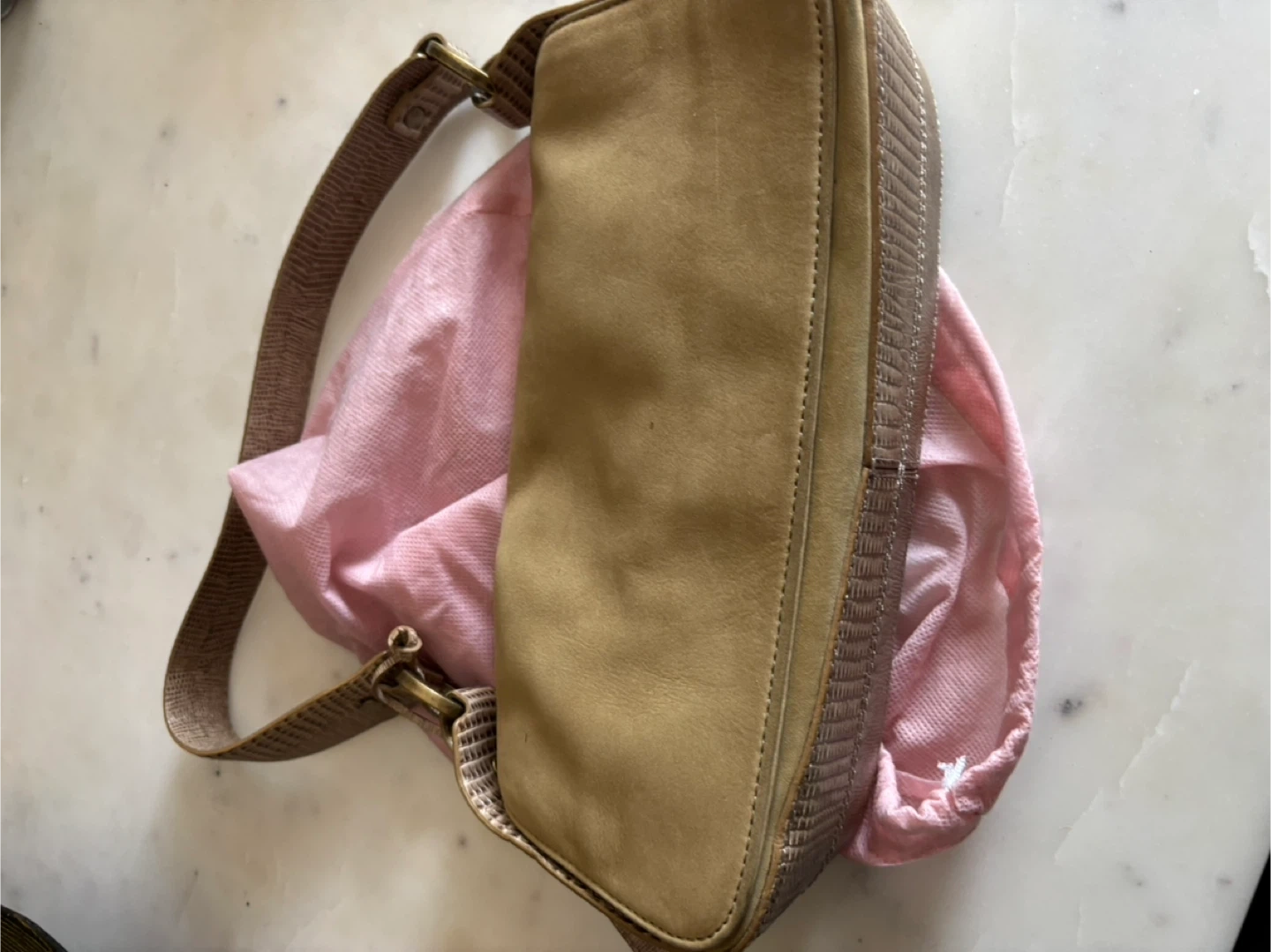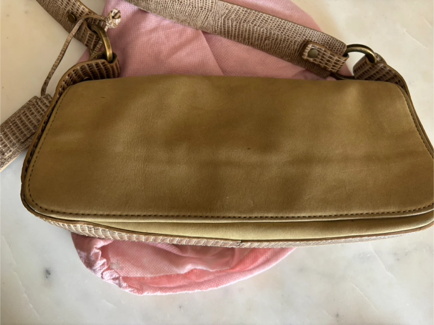 Antonio Melani green suede handbag with a leather snake print strap and base. It comes with dust bag. Bought in Houston for Usd 160. In excellent conditions.