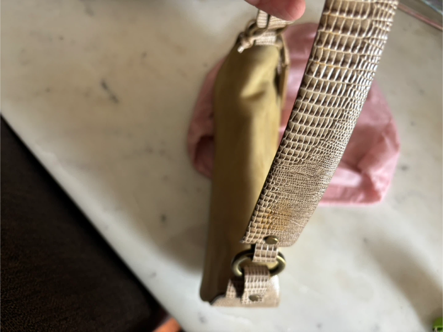 Antonio Melani green suede handbag with a leather snake print strap and base. It comes with dust bag. Bought in Houston for Usd 160. In excellent conditions.