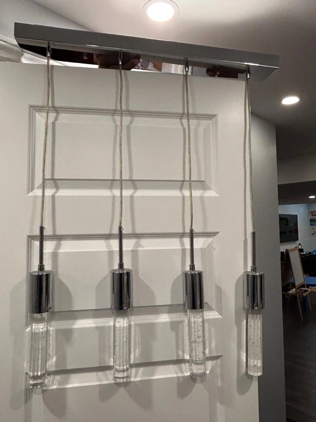Selling an Artika Essence 4-light 26W Stainless Steel Integrated LED pendant light with bubble glass diffuser. It's in great condition and would look amazing in any home! Originally bought for $289