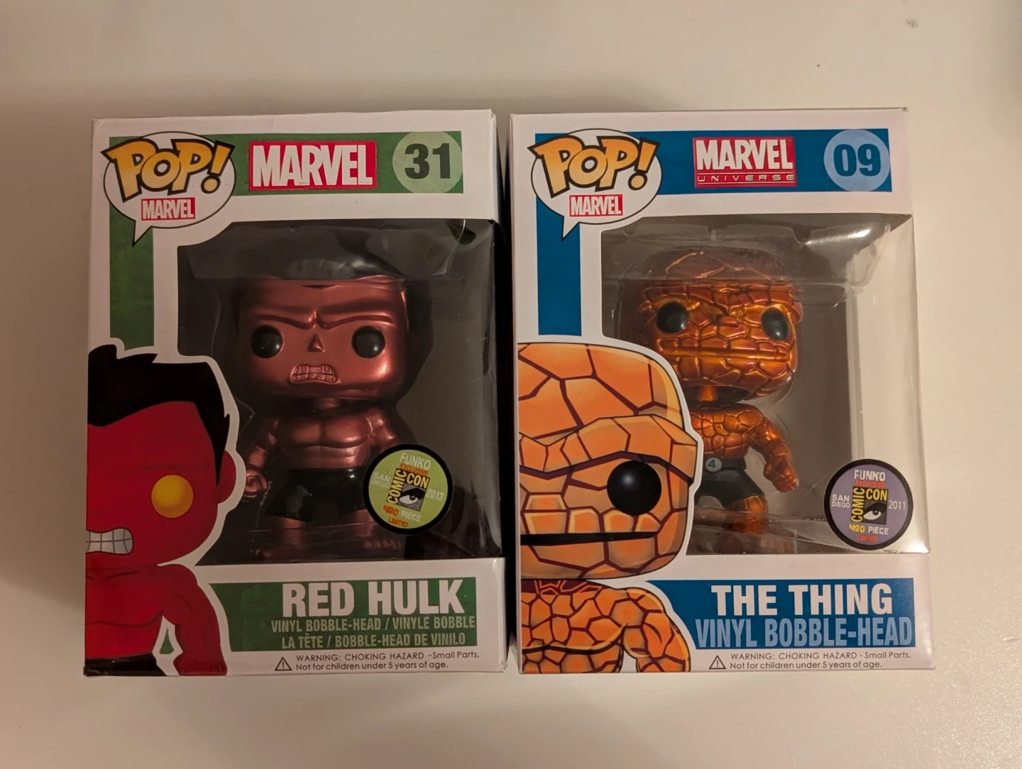 Buy & SellReplica The Thing & Red Hulk Metallic SDCC Funko PopsReplica The Thing & Red Hulk Metallic SDCC Funko Pops$25Replica versions of #09 The Hulk (Metallic) SDCC 2011 & #31 Red Hulk (Metallic) SDCC 2013 Funko PopsWHERE TO MEETMr. SurpriseView MapSELLERMonkeyMarkham E461 review0 chats·1 favorites·12 viewsSEND CHAT TO SELLERHi Monkey! I’m interested in your listing.Hi Monkey! I’m interested in your listing.Get the Karrot app to chatSign In to chat