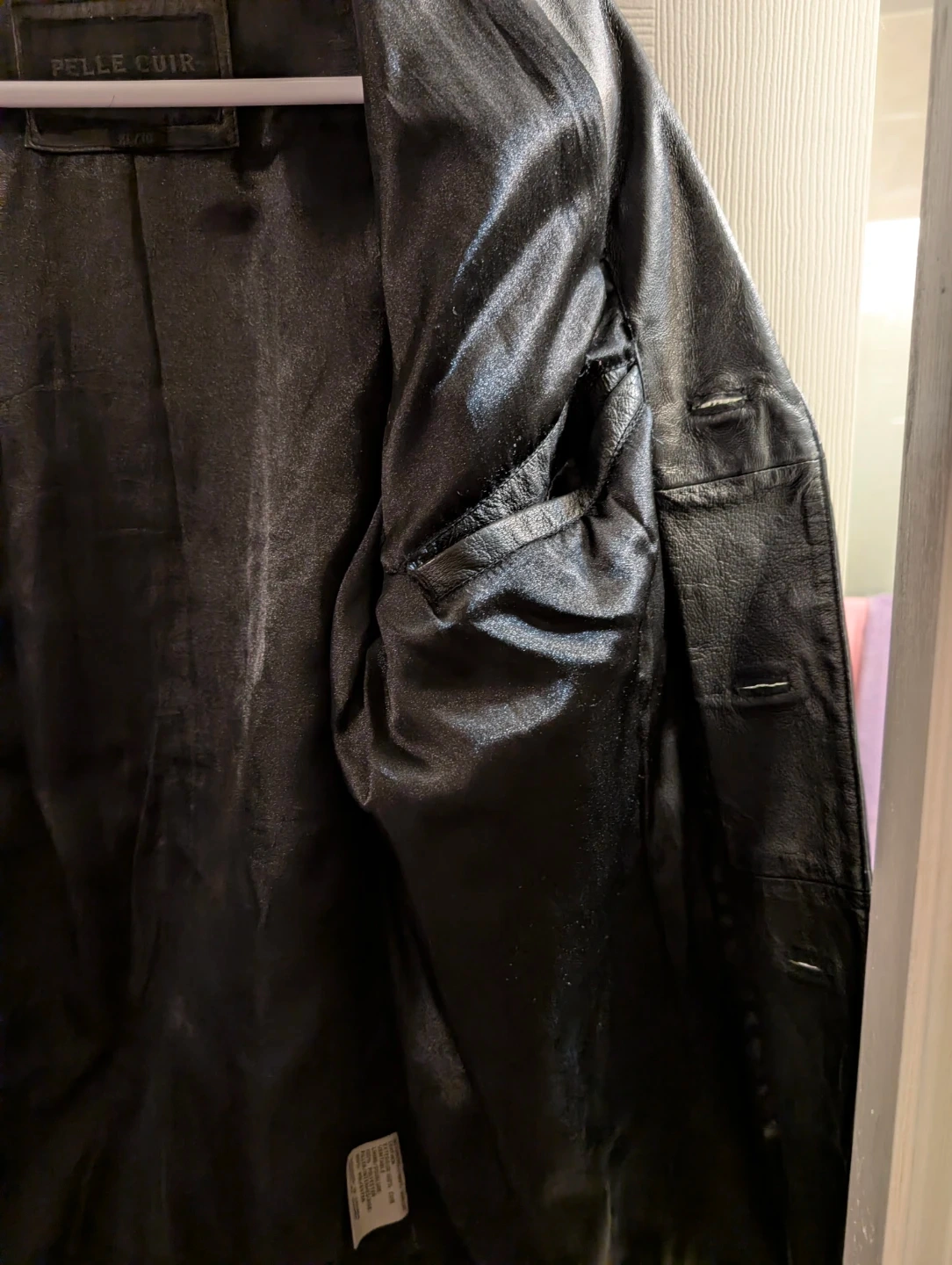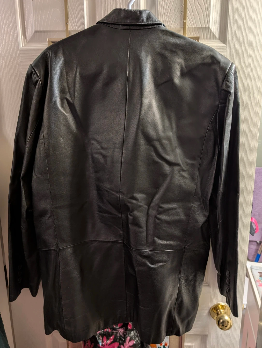 Pelle Cuir leather jacket in black. Size XL/TG. Classic blazer style with button closure. In very good condition. Ideal for cold weather