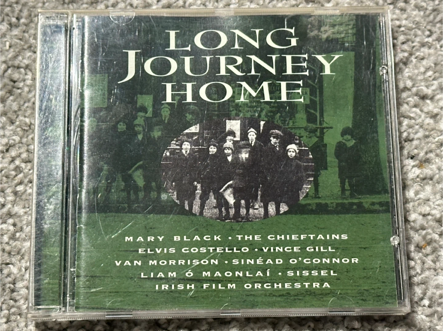 This is the 'Long Journey Home' CD. It features performances by Mary Black, The Chieftains, Elvis Costello, and others. The Irish Film Orchestra is also listed.