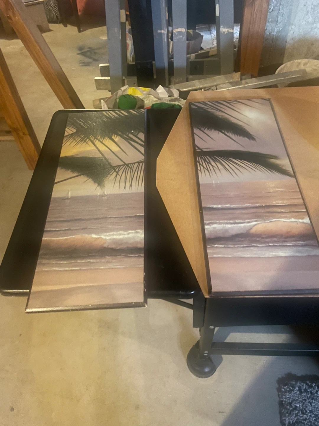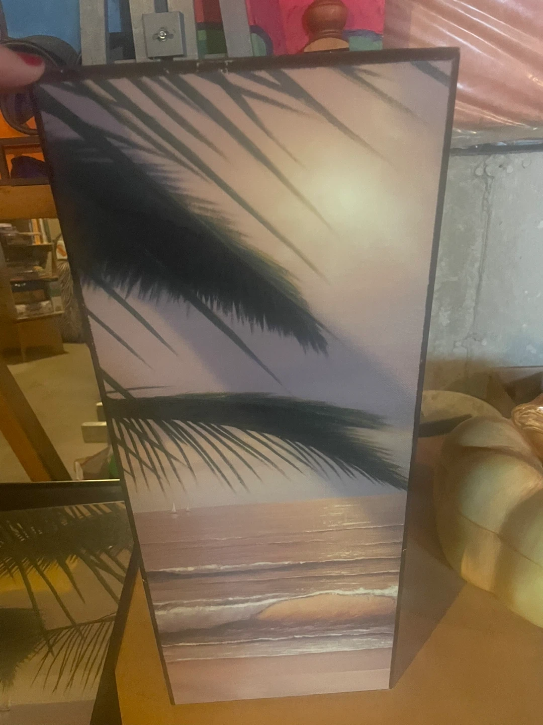 This set includes two canvas prints featuring a tropical beach scene with palm trees and sailboats. They're perfect for adding a coastal vibe to any room. Each piece measures roughly