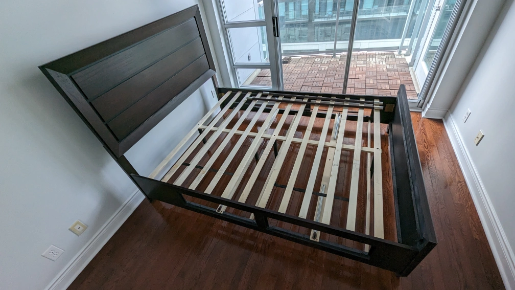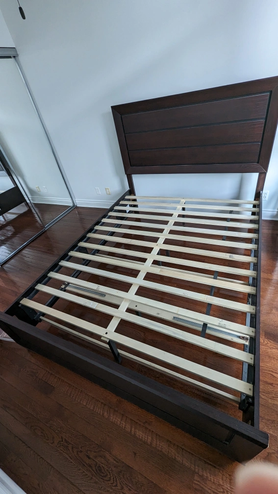 This bed has served us well, however we've moved and the style of the bed no longer complements our new place. The bed is in great condition and comes with 4 drawers which fit quite a bit of clothes which is very convenient. The bed will be disassembled. Pick up only.