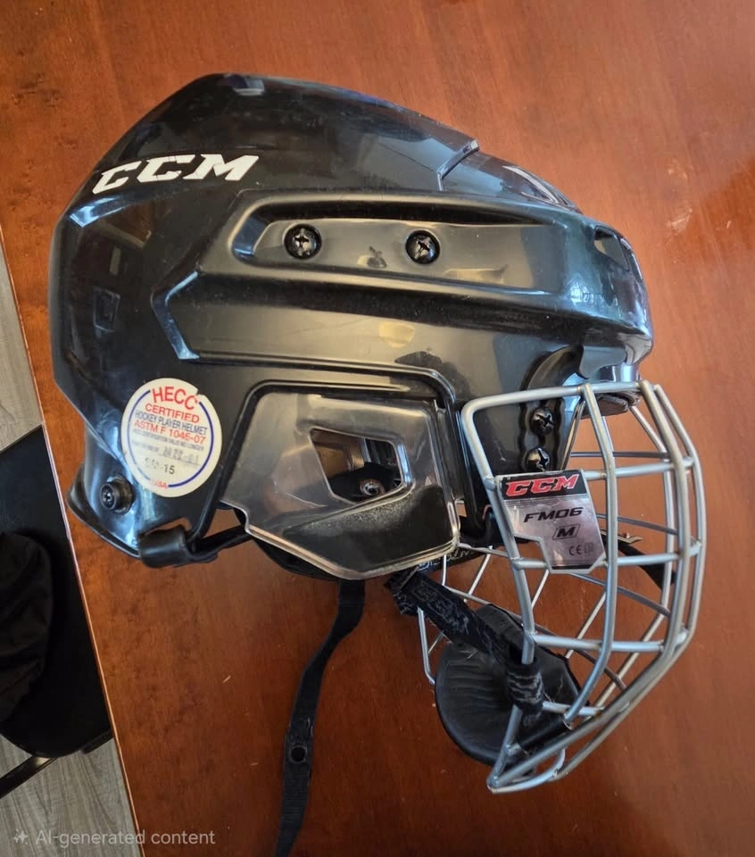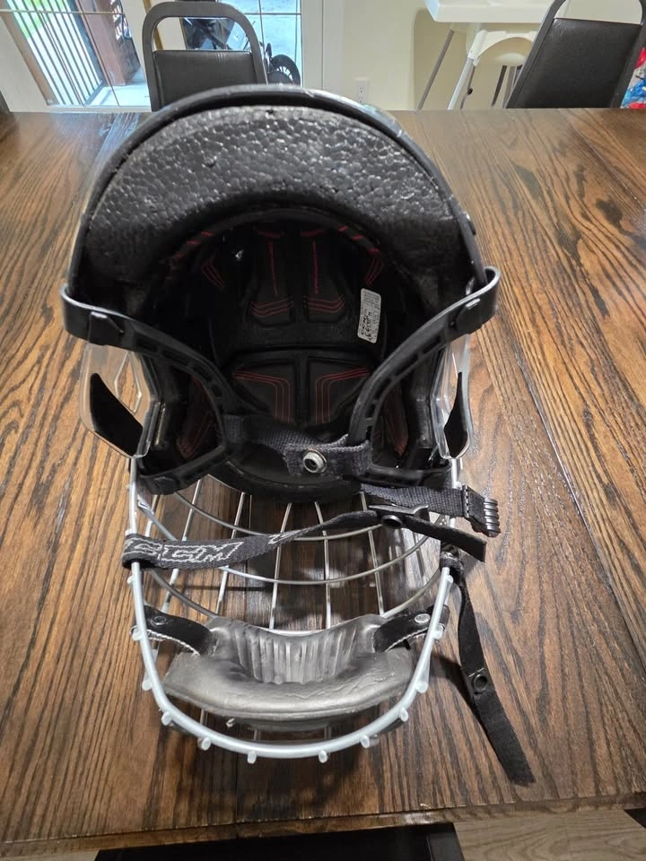 Clean, lightly used for school skating trips. Certification is expired, so it would be best for pond hockey, ball hockey or casual use. Comfortable fit and fully adjustable. Includes cage - ready to go. Asking $40.