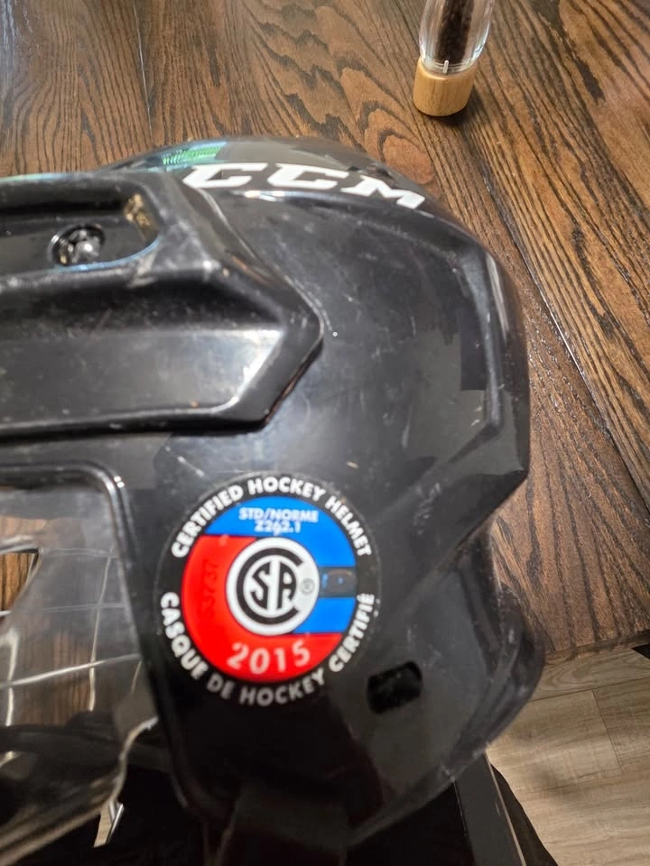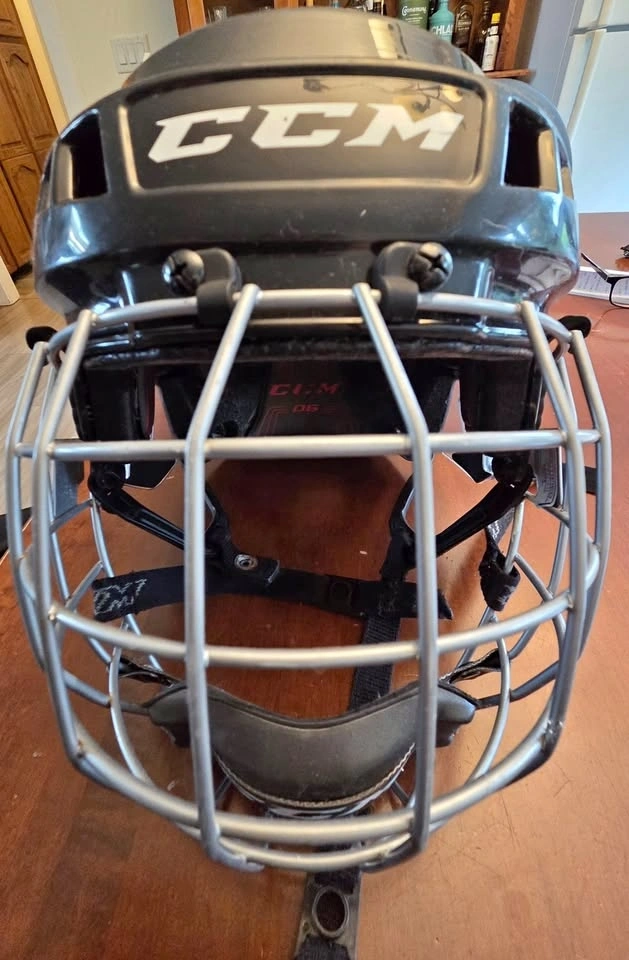 Clean, lightly used for school skating trips. Certification is expired, so it would be best for pond hockey, ball hockey or casual use. Comfortable fit and fully adjustable. Includes cage - ready to go. Asking $40.