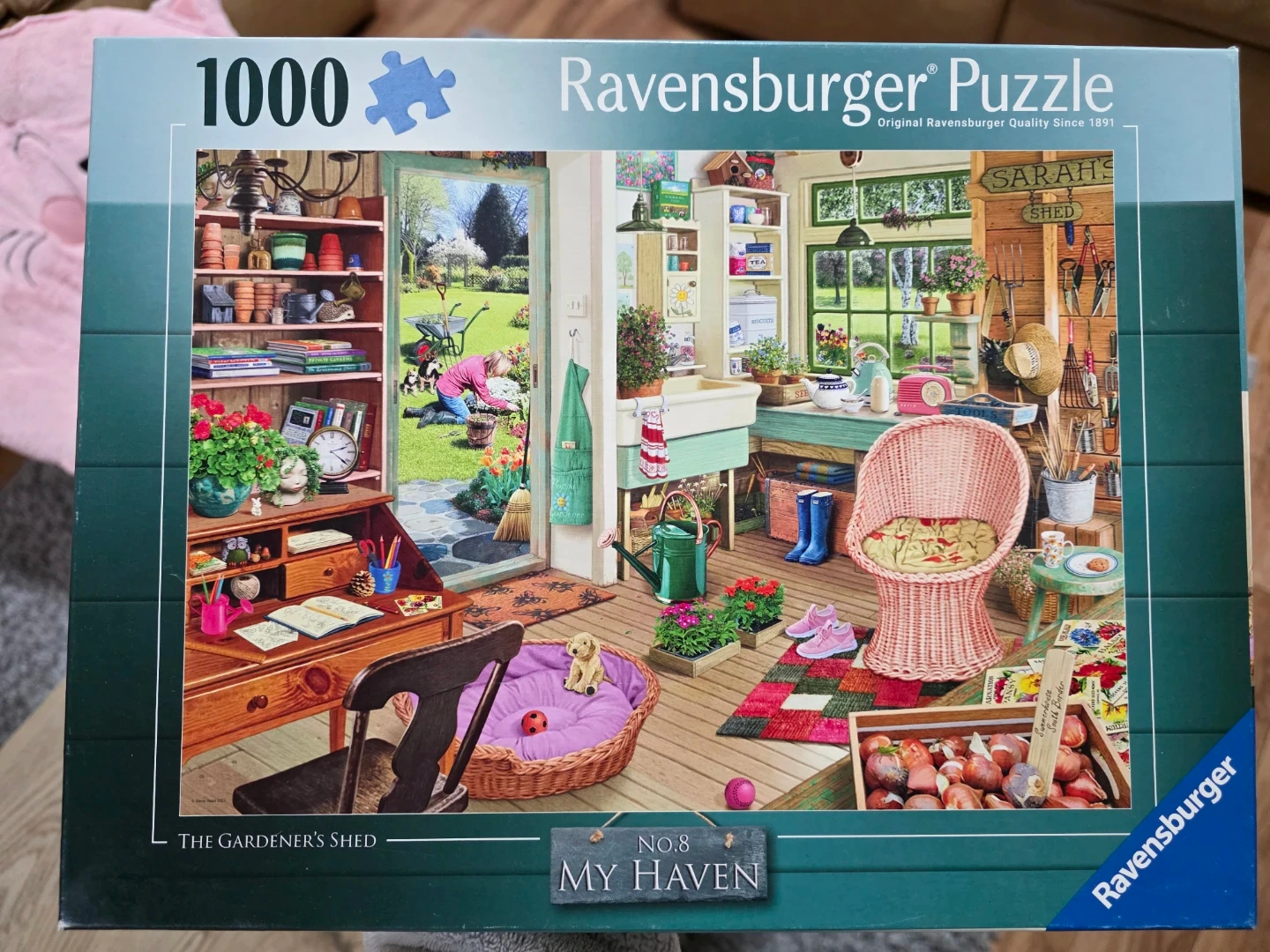 Ravensburger puzzle called 'The Gardener's Shed'! It's got 1000 pieces and is from the 'My Haven' series.