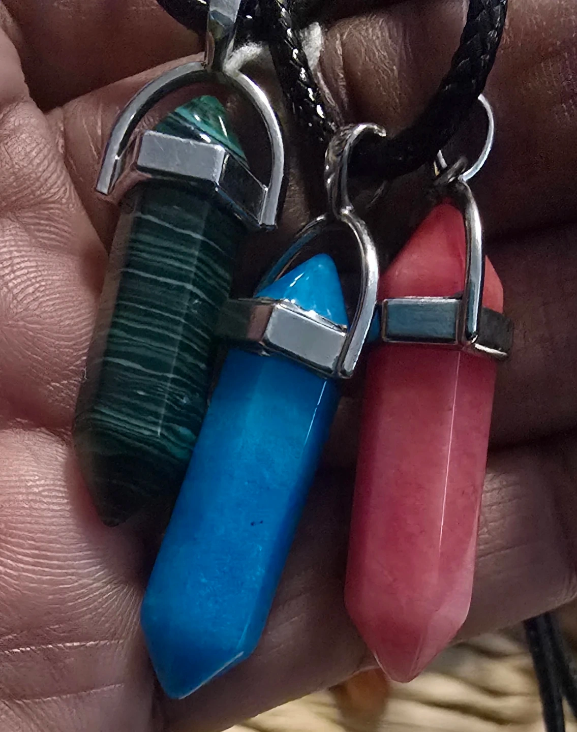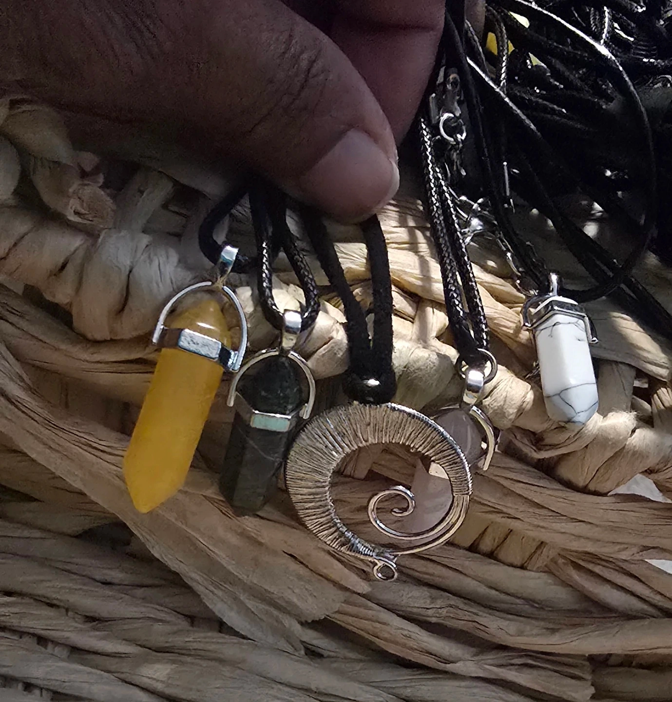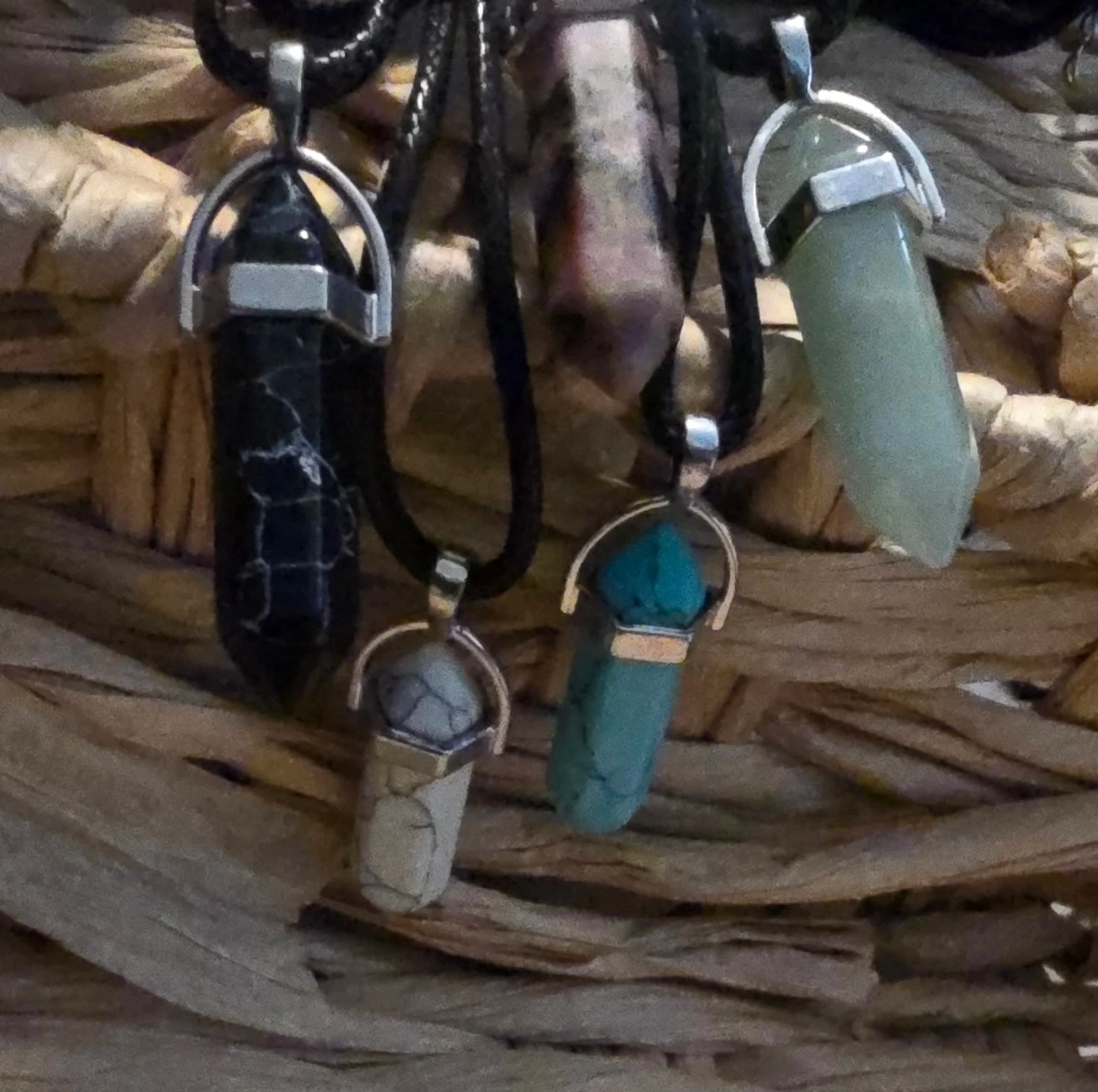 🥕These hand made healing stone necklaces feature polished crystal points in a variety of colors,. Silver-tone caps and bails secure the pendants. Unique stones include yellow aventurine, rose quartz, white howlite, and more red, green, flag colors and much more $4. Each choose from sterling silver, black leather or braided black cord, necklace chain.