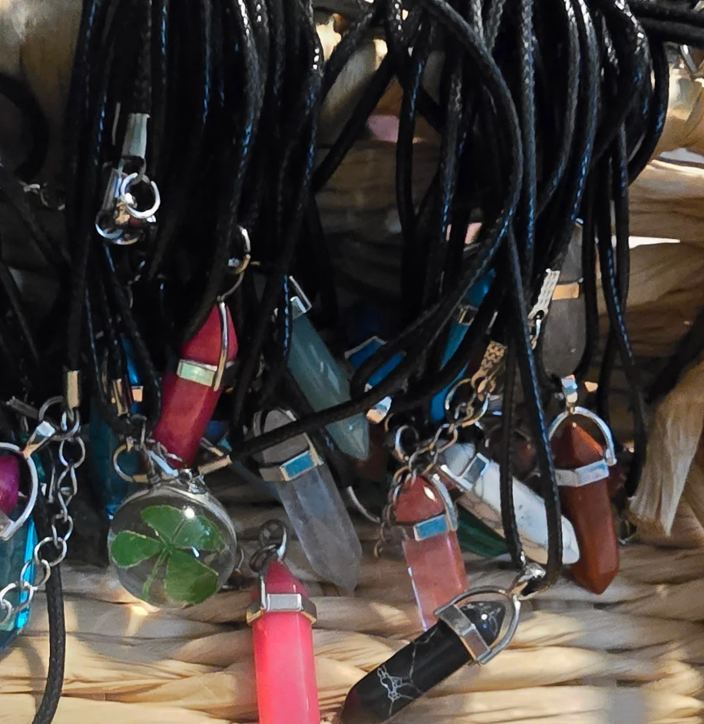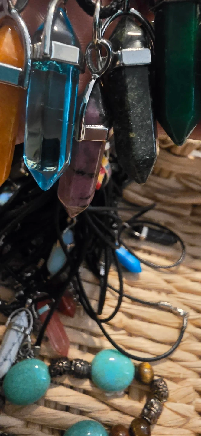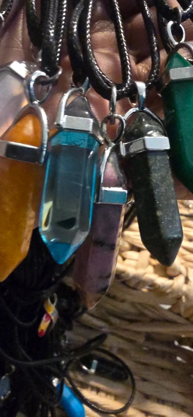 🥕These hand made healing stone necklaces feature polished crystal points in a variety of colors,. Silver-tone caps and bails secure the pendants. Unique stones include yellow aventurine, rose quartz, white howlite, and more red, green, flag colors and much more $4. Each choose from sterling silver, black leather or braided black cord, necklace chain.