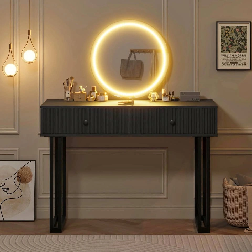 BRAND NEW Black Vanity Table with LED Mirror 3 Color Modes