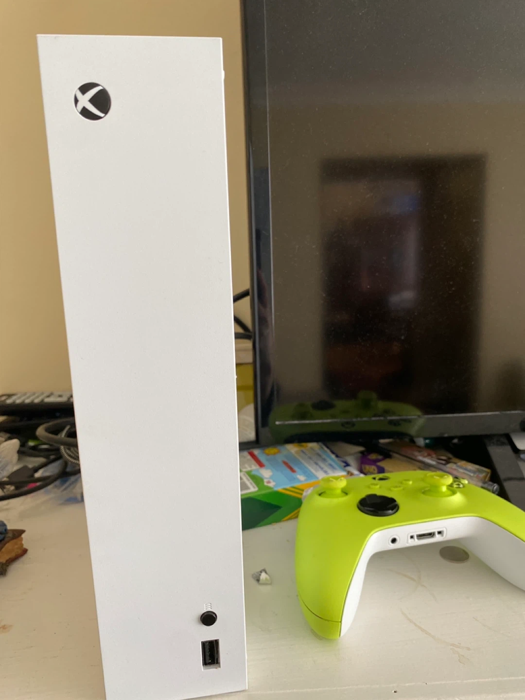 This is an Xbox Series S console in white. It comes with one controller. It's a digital-only console, perfect for gaming on the go or for anyone looking for a compact system.