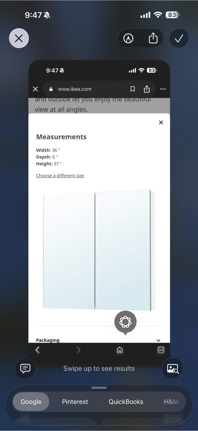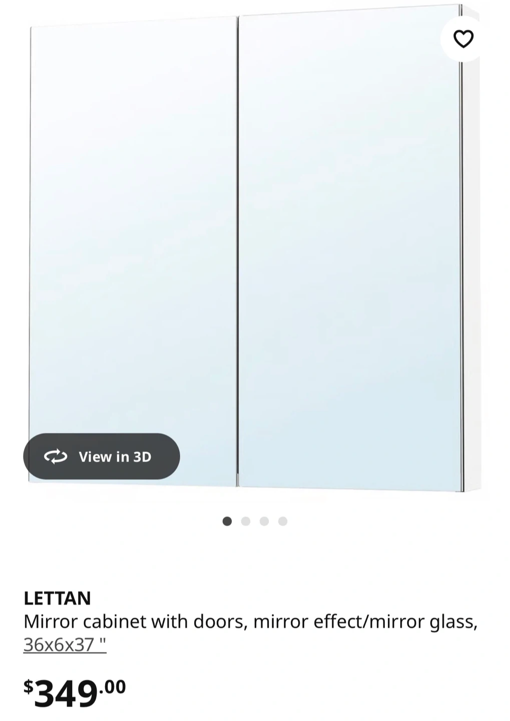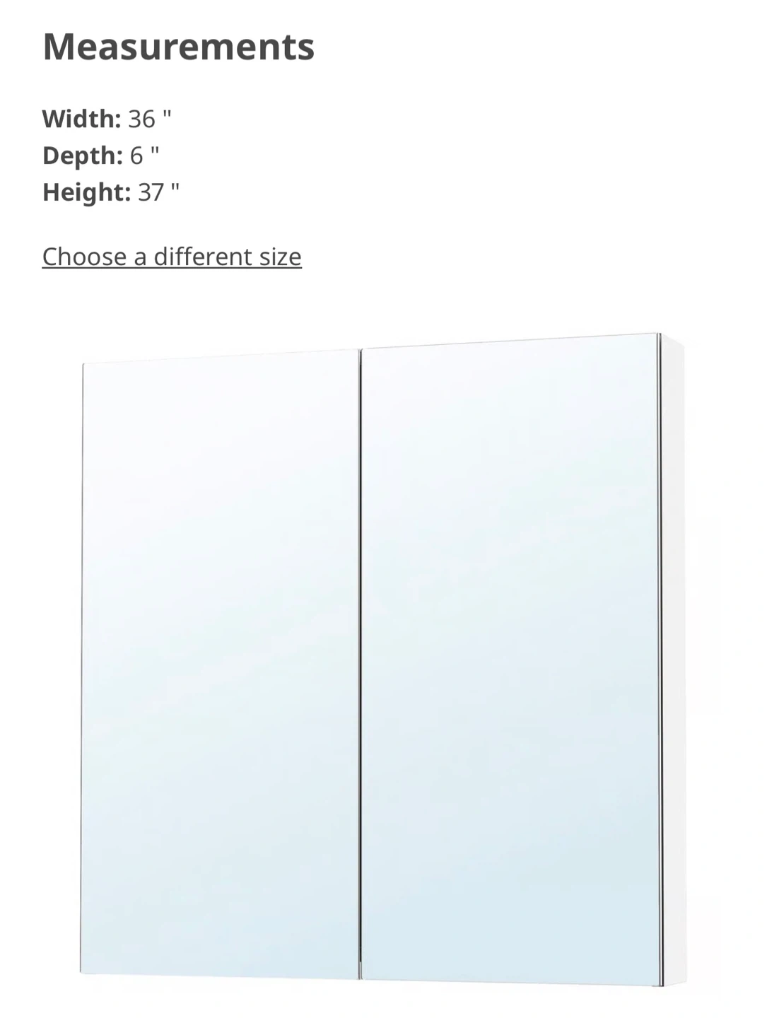 This is an IKEA LETTAN mirror cabinet with doors. It's 36 inches wide, 6 inches deep, and 37 inches high. The cabinet has a mirror effect/mirror glass finish.