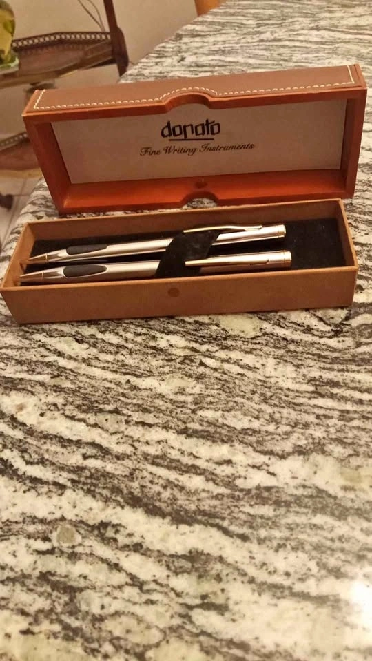 Buy & SellDonato Pen & Pencil Set - VintageDonato Pen & Pencil Set - Vintage$25Leather and wood case with silver and gold accents. Includes warranty paper and metal tag.WHERE TO MEETCheck LocationView MapSELLERElsa FiliceMaple Leaf634 reviews0 chats·1 favorites·4 viewsSEND CHAT TO SELLERHi Elsa Filice! I’m interested in your listing.Hi Elsa Filice! I’m interested in your listing.Get the Karrot app to chatSign In to chat