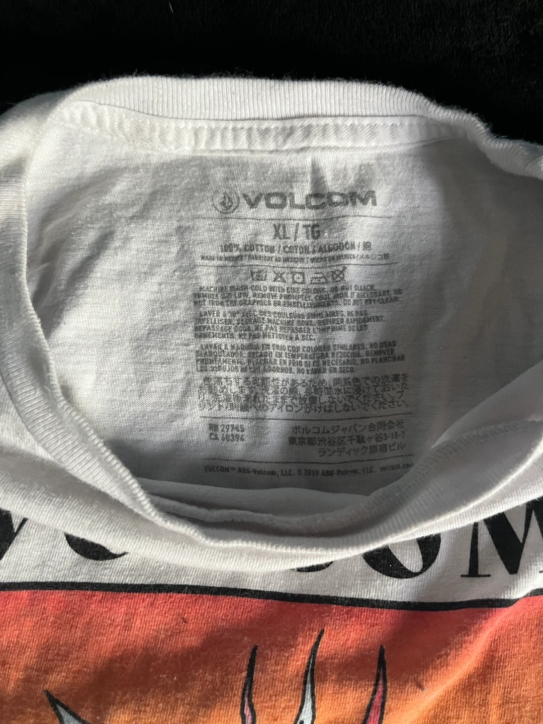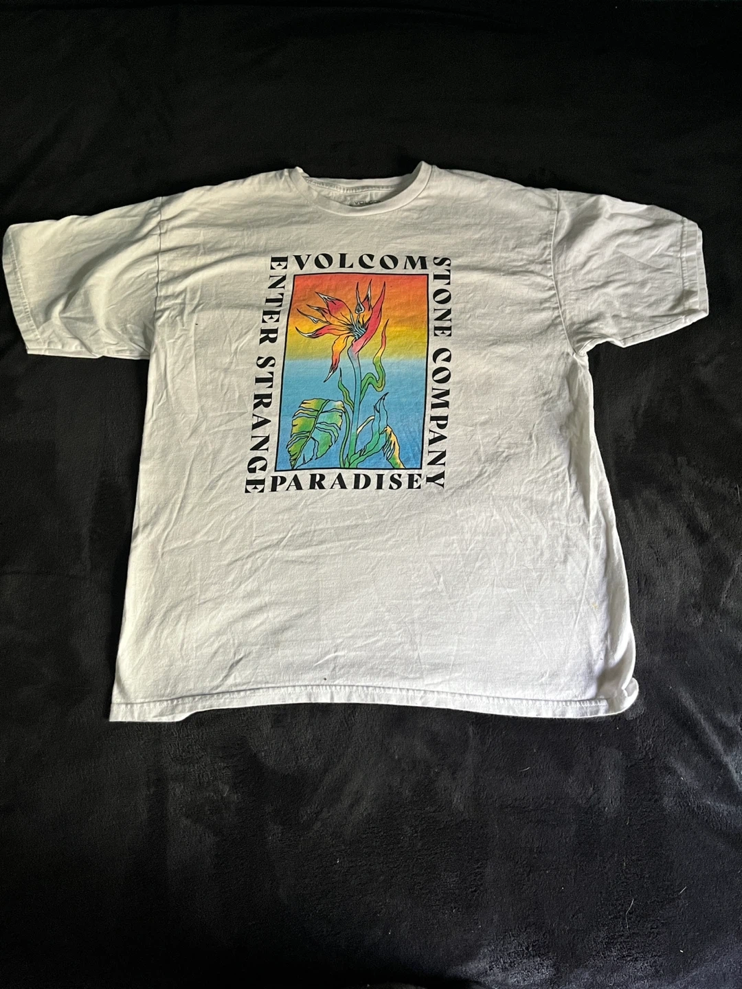 Selling a Volcom Stone Company T-shirt in size XL. The shirt features a colourful graphic design on the front. It's made of 100% cotton.