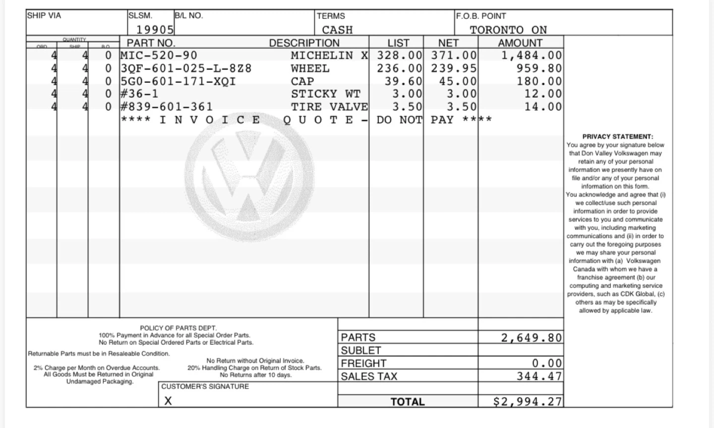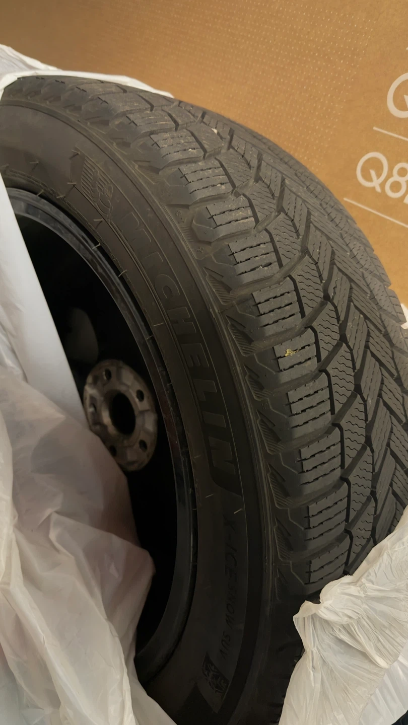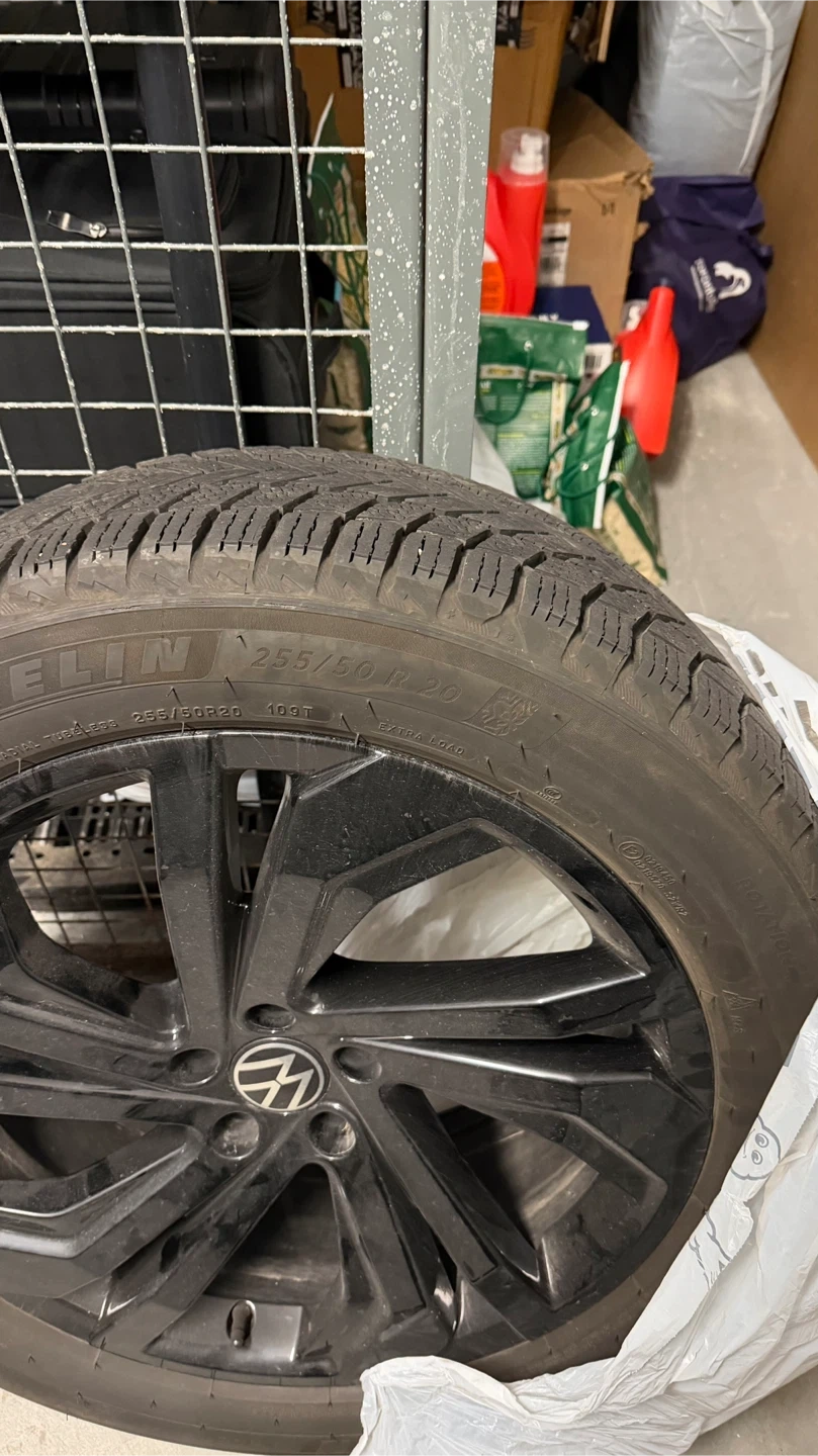 Michelin brand new condition, black rims with winter tires, for a Volkswagen. It's in great condition.
