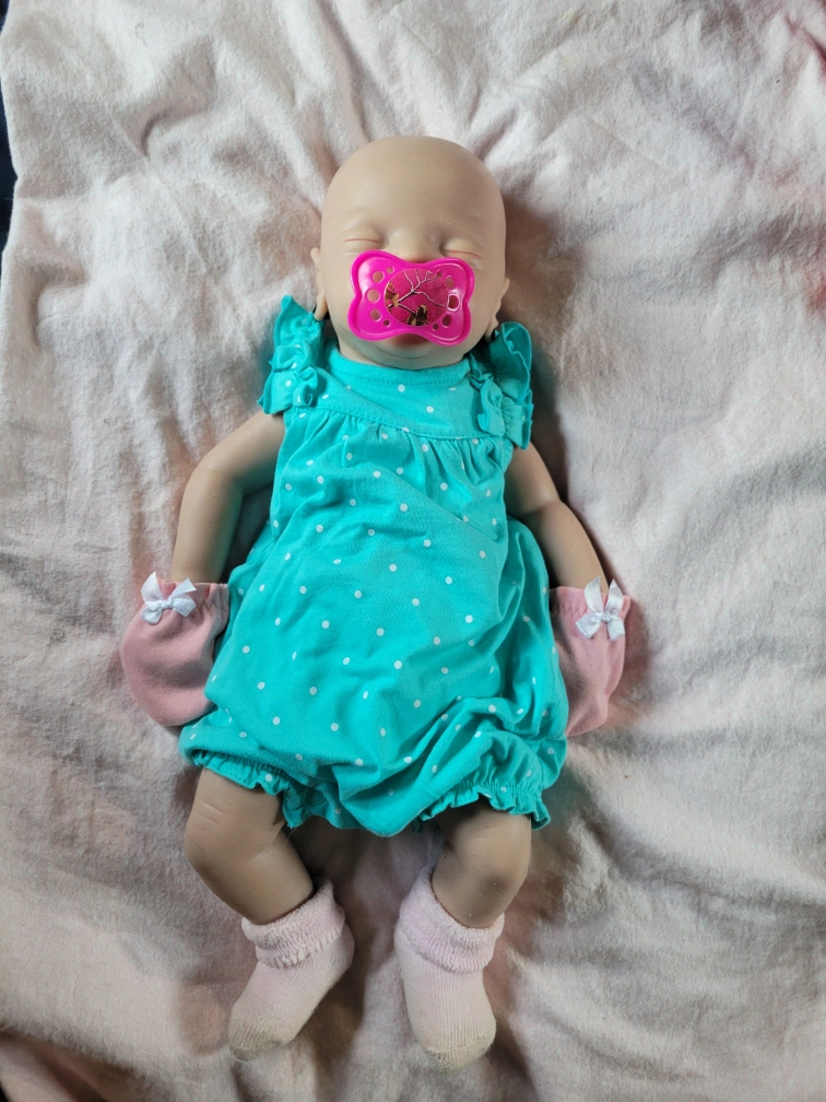 73Selling a mixed bundle of baby clothes! There are preemie and newborn sizes and styles included. The bundle includes dresses, pants, onesies, and more. All in good condition and ready for a new home Baby girl Vollence doll. full silicon body, can submerge fully in water. The clothing is Baby Gap, Carter's and more! She is 18" long, weighs 6lbs $300 for everything you see I paid $380 for the doll and $300 for the clothes Price is firm Will except e-transfer