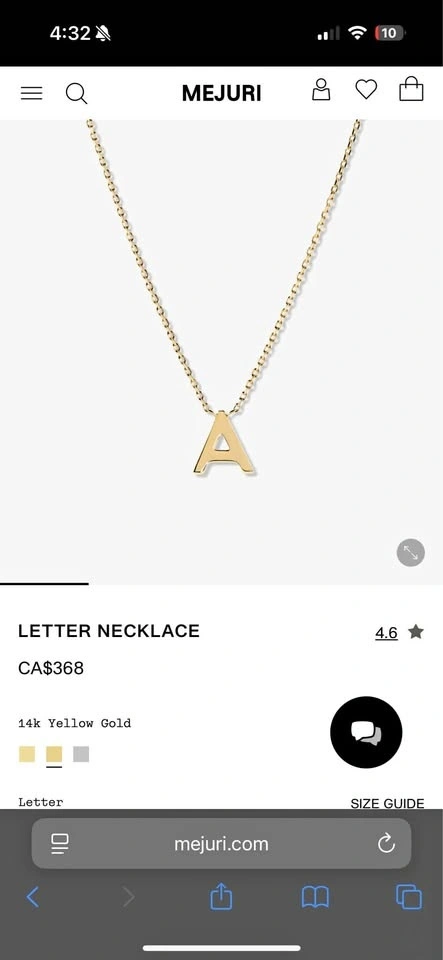 Buy & SellMejuri Solid 14k Yellow Gold Letter A NecklaceMejuri Solid 14k Yellow Gold Letter A Necklace$18014k Solid Gold necklace purchased from Mejuri. Only worn a few times. Comes with the Mejuri pouch.WHERE TO MEETCheck LocationView MapSELLERverifiedALCity Center681 review1 chats·3 favorites·52 viewsSEND CHAT TO SELLERHi AL! I’m interested in your listing.Hi AL! I’m interested in your listing.Get the Karrot app to chatSign In to chat