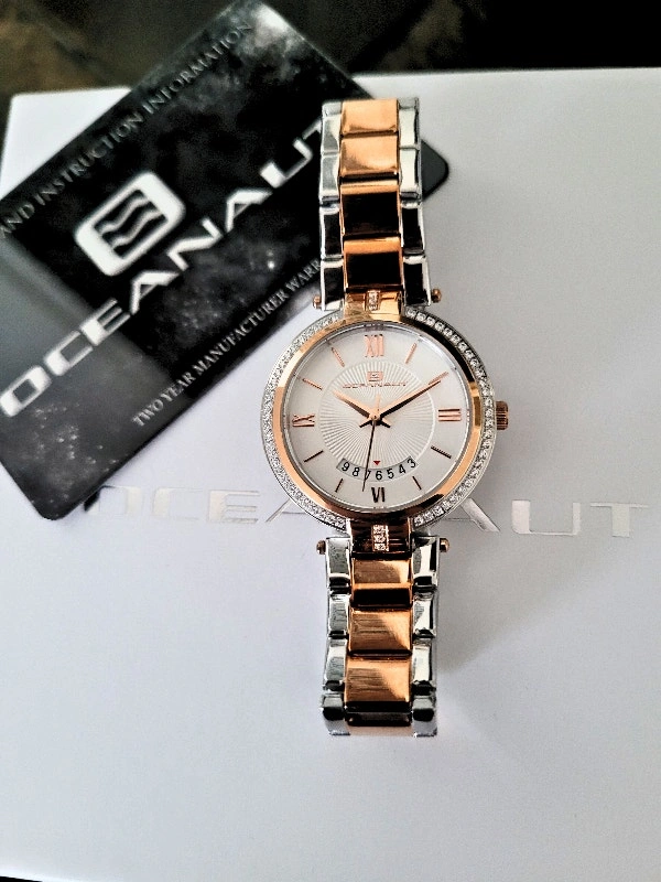 Brand new in the box with authenticity card. Retail value: $500 CAD / $350 USD. Model OC0294 Amaya. Case diameter 32 mm, thickness 8 mm. Band material: Stainless Steel, width 16 mm, color Rose Gold/Silver. Dial color: White. Bezel material: Stainless Steel. Calendar: Yes. Dial window material: Mineral. Movement: Quartz. Water resistant depth: 30 M. Pick up area: Sheppard & Don Mills. Cash accepted, cashless payment accepted.