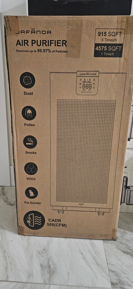 Selling a Jafanda JF999 air purifier brand new in box! It removes up to 99.97% of particles, including dust, pollen, smoke, VOCs, and pet dander. It's suitable for spaces up to 4575 sq ft. The CADR is 588 (CFM). Originally listed for $699.99!