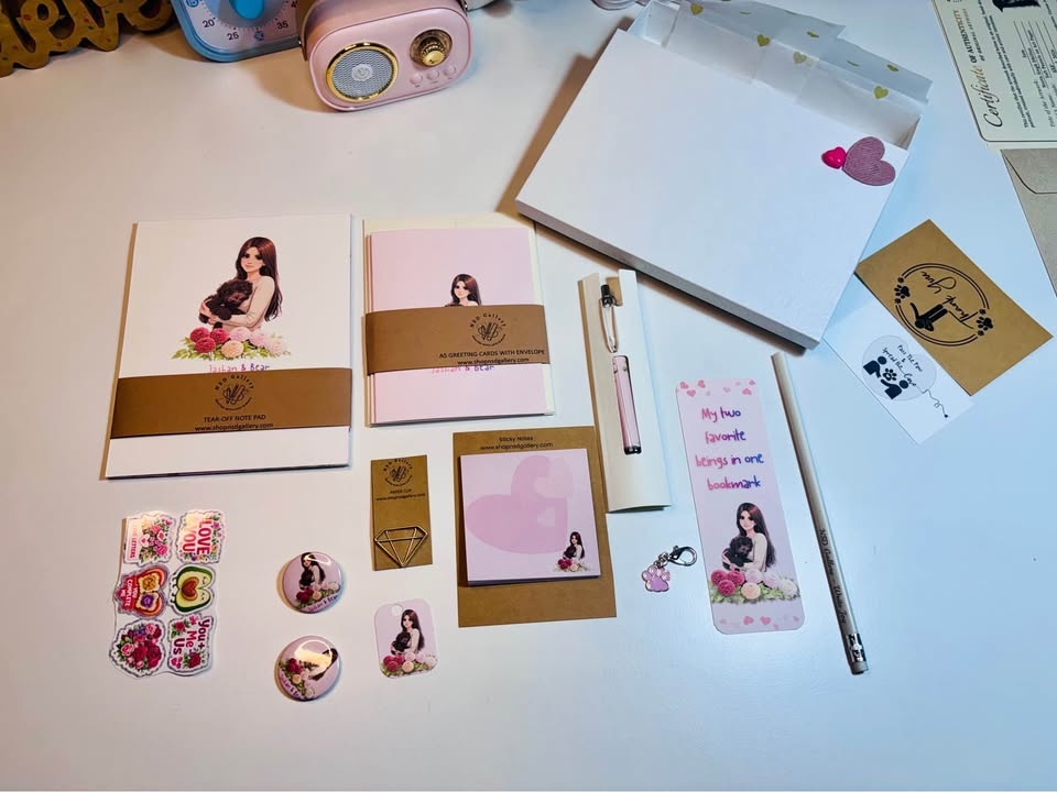 Looking for a meaningful gift this Valentine's? I create custom stationery sets with your pet's illustration — cute, emotional, and totally unique. Includes notepads, sticky notes, bookmarks & cards, and gift-ready packaging. Great for pet moms & dads, Valentine’s gifts, birthdays, or remembering a beloved pet. Let me know if you're interested!