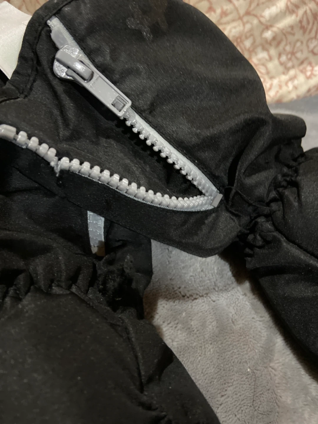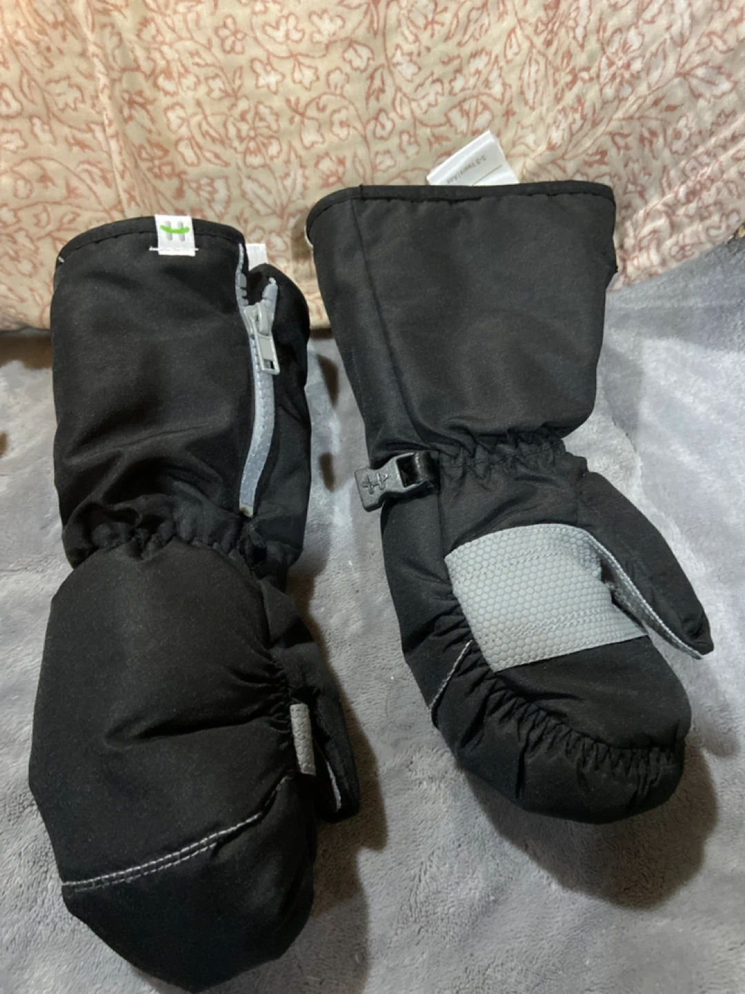 Pair of black mittens with BOA branding. Water-resistant outer shell. Hot paws are bigger but zipper is broken
