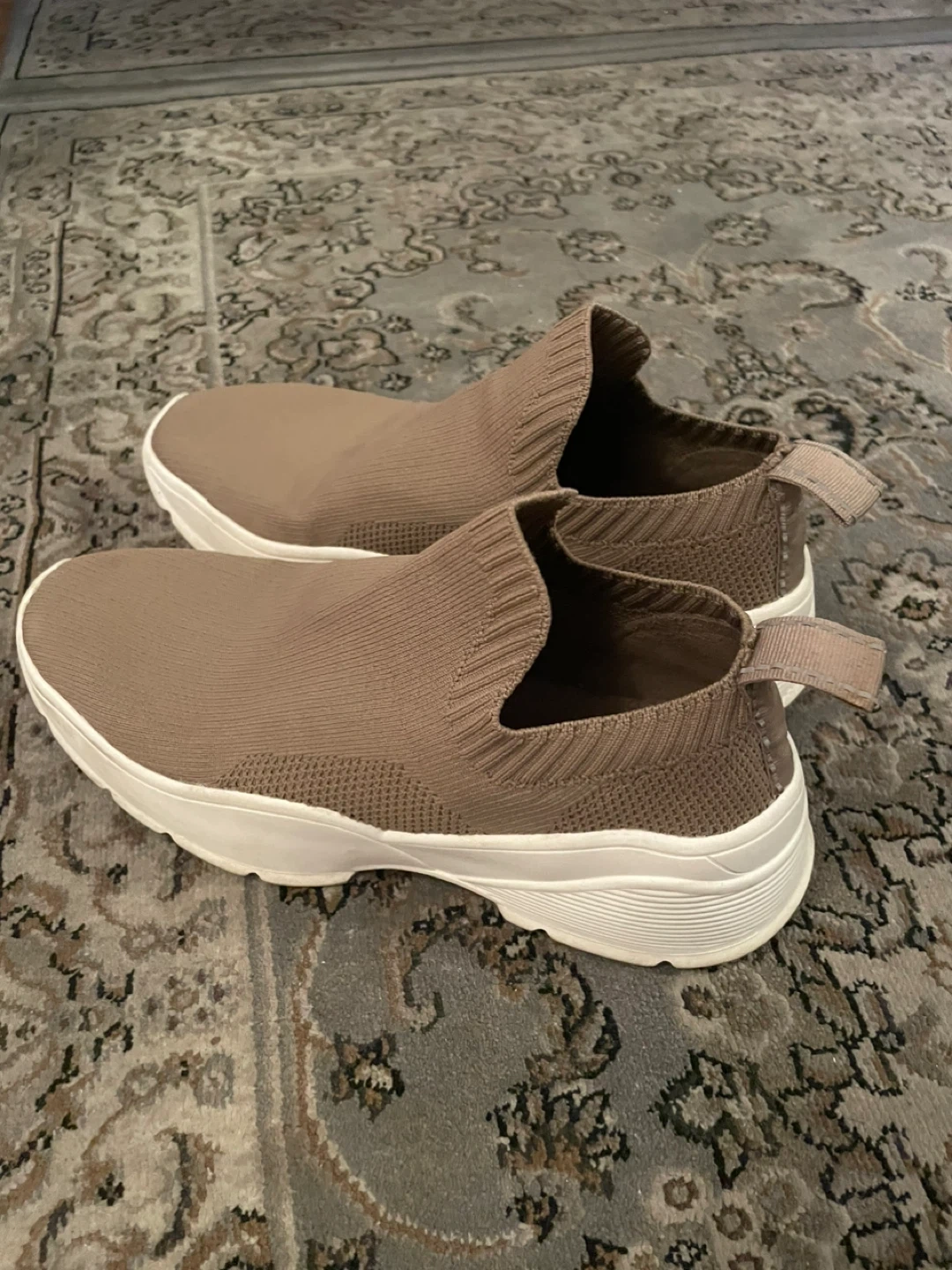 Selling a pair of H&M slip-on sneakers in a neutral, earthy tone. They're in great shape and a size 7. Perfect for casual outings or just lounging around!