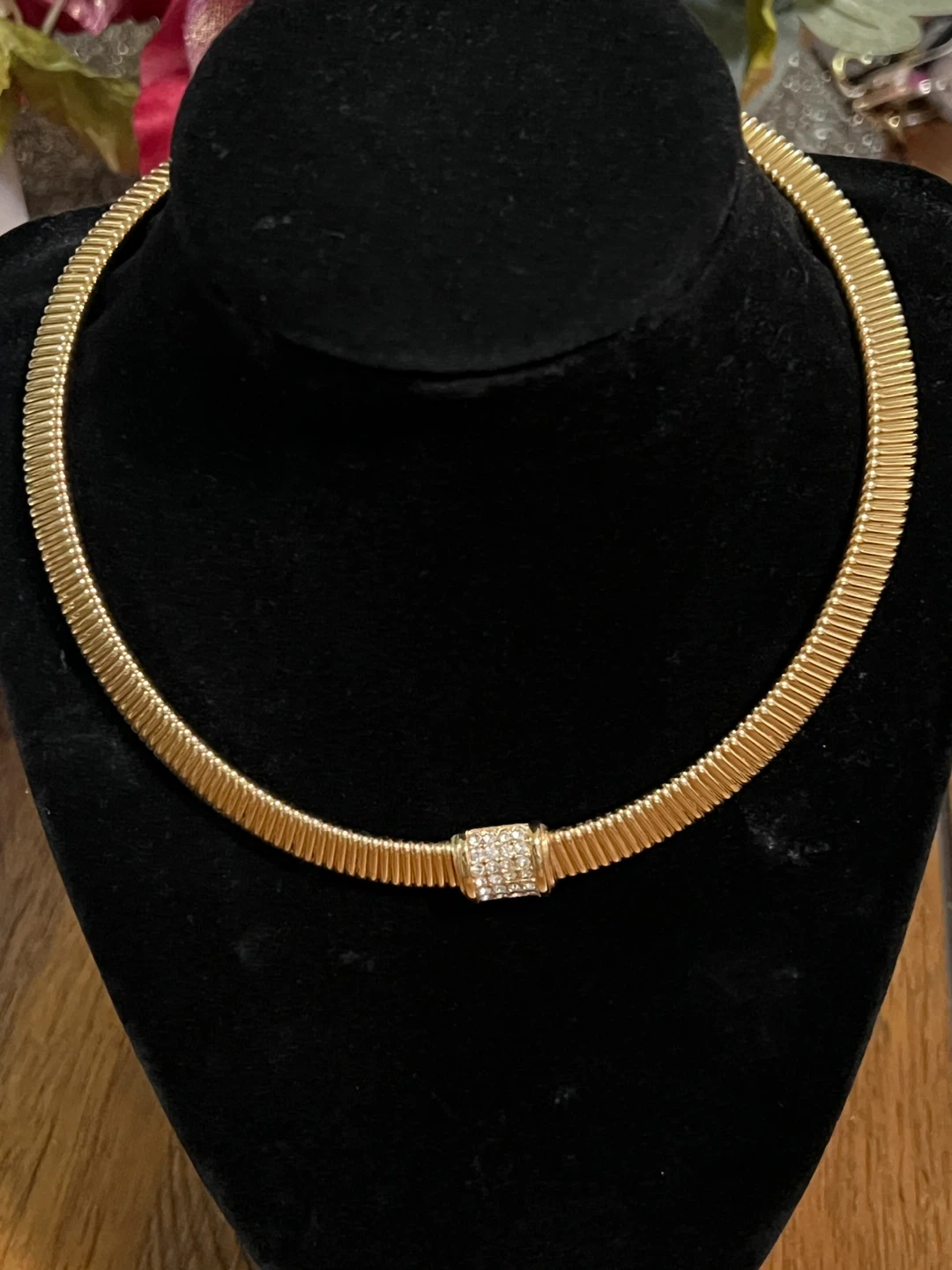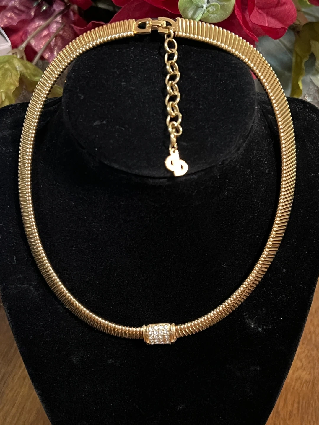 Christian Dior Gold Tone Choker Necklace with Rhinestones