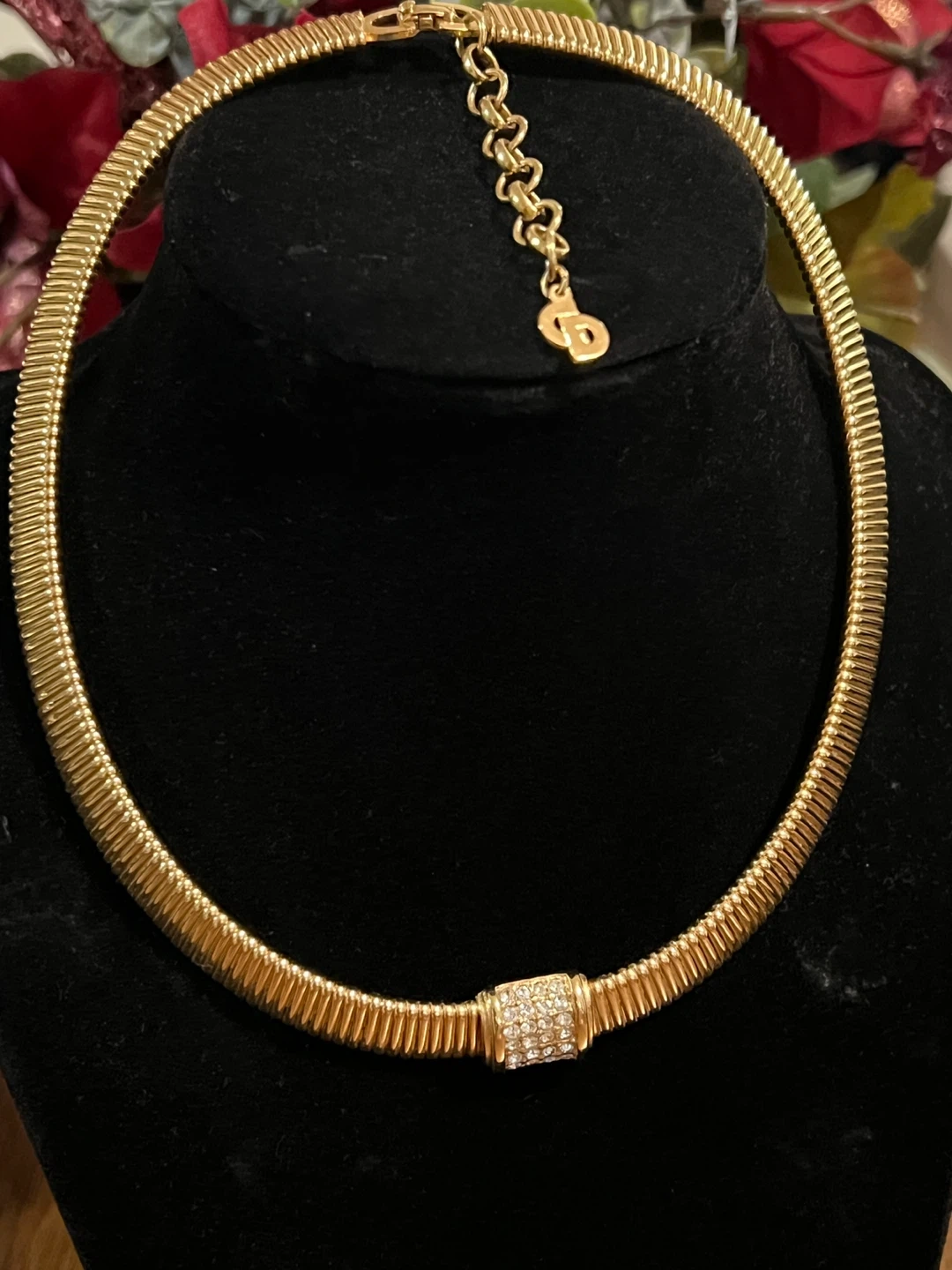 Christian Dior Gold Tone Choker Necklace with Rhinestones