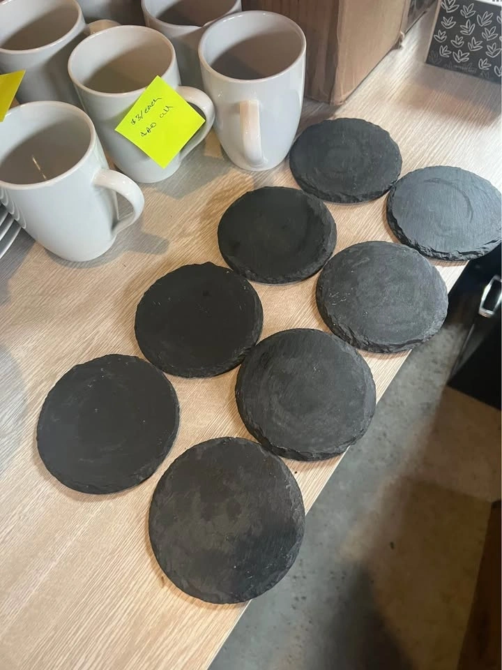 Only $10 for the full set! Includes 8 round natural slate coasters (4”) and a metal holder. They have a non-slip backing to protect your table and offer a rustic, modern look, great for home, office, or gifts. Can also be used for DIY or laser engraving projects. Gently used, still in great shape. Pickup in Pickering (Durham Region).