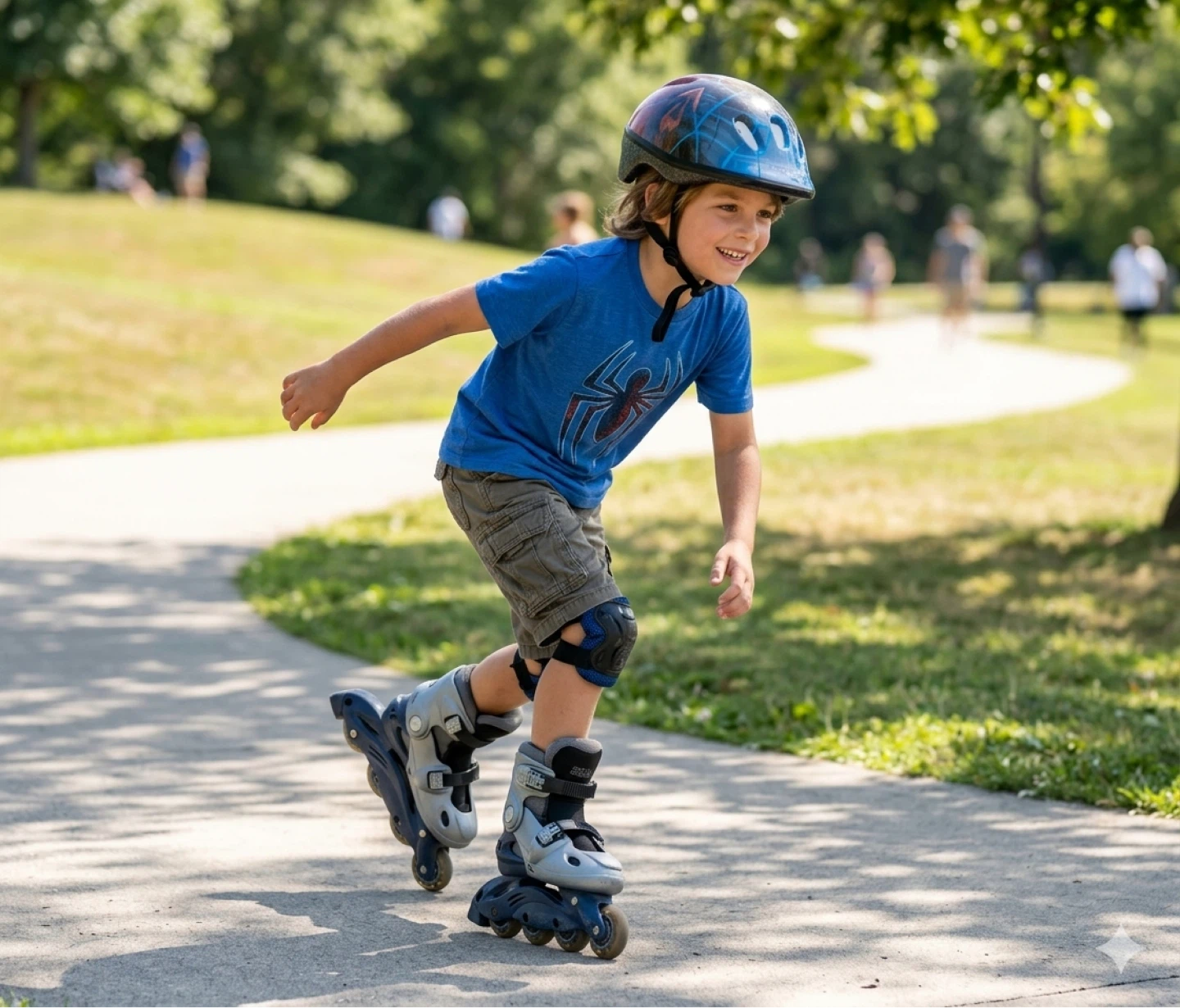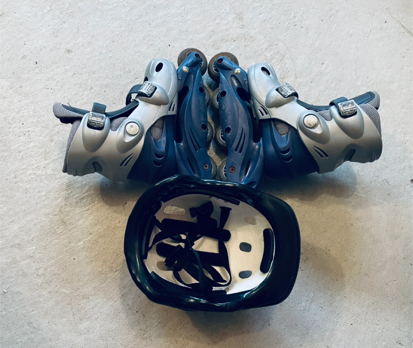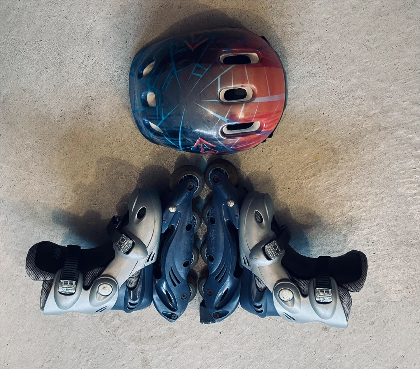 A pair of boy roller skates and helmet. They are good for 5-6 years old boy. They are good condition.