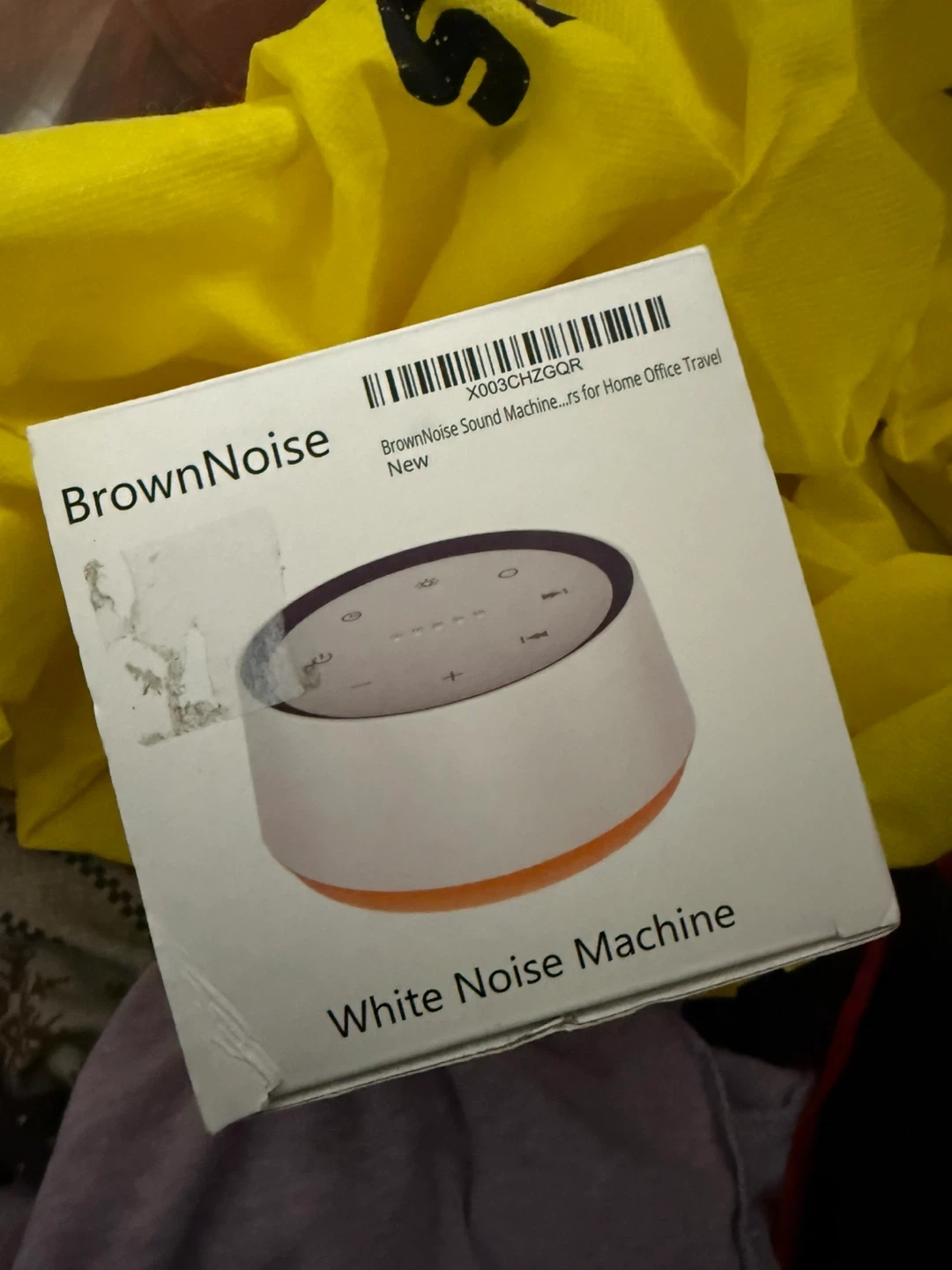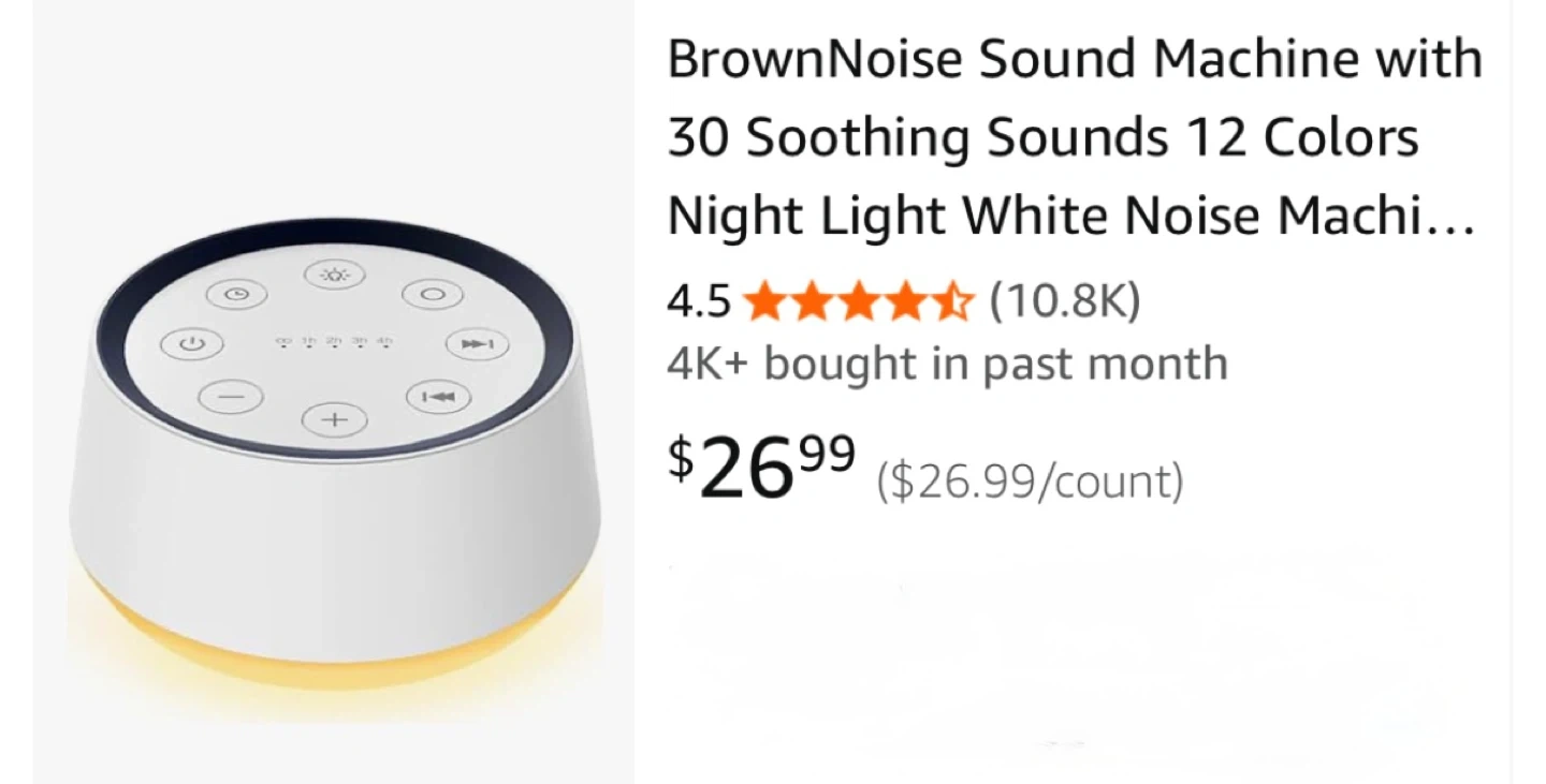 This BrownNoise sound machine has 30 soothing sounds and 12 colours. It also includes a night light. It's great for home office or travel. BRAND NEW!!!!
