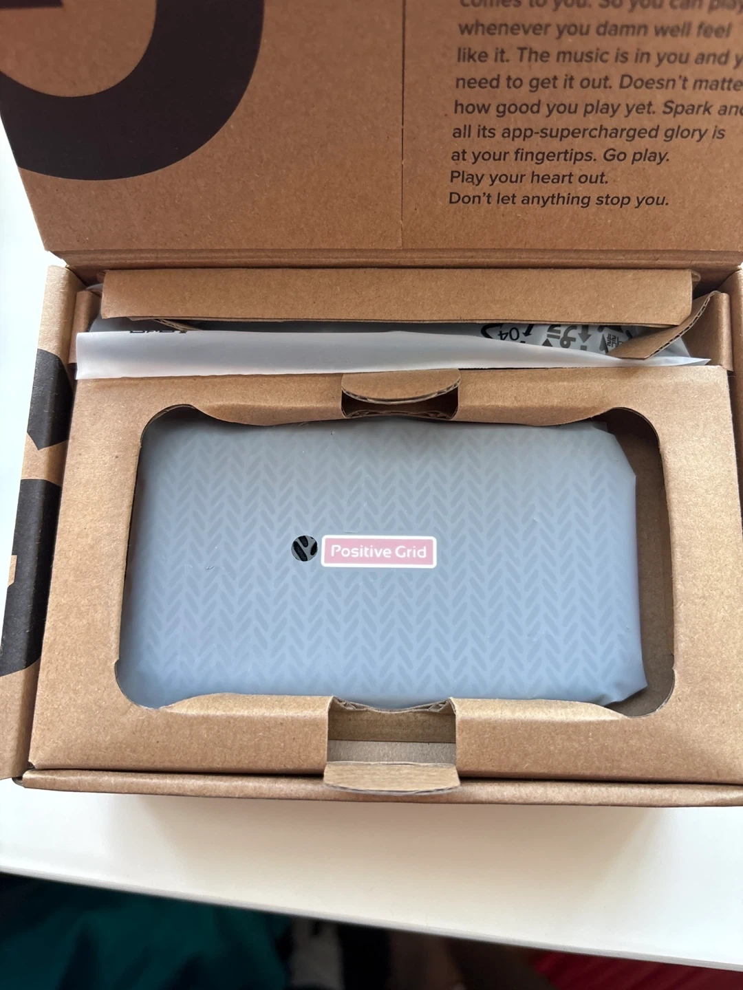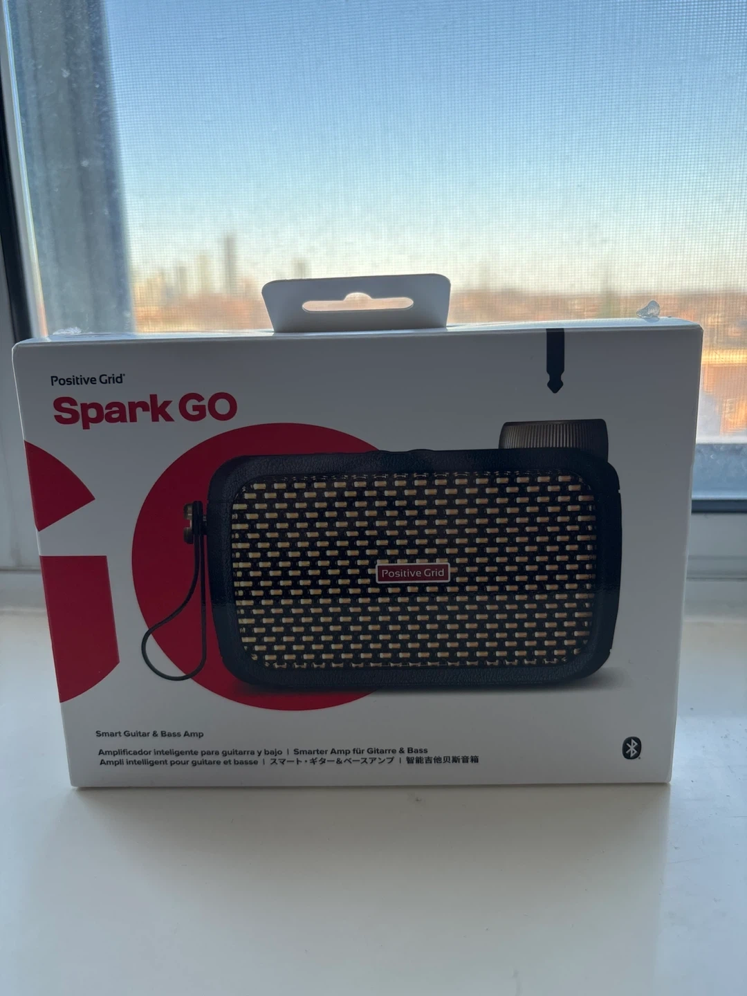 Positive Grid Spark GO Smart Guitar & Bass Amp. It's a compact, portable amp. Comes with charging cable. Brand new.