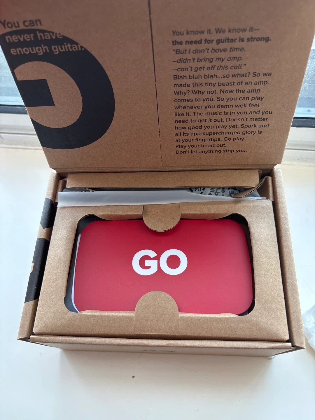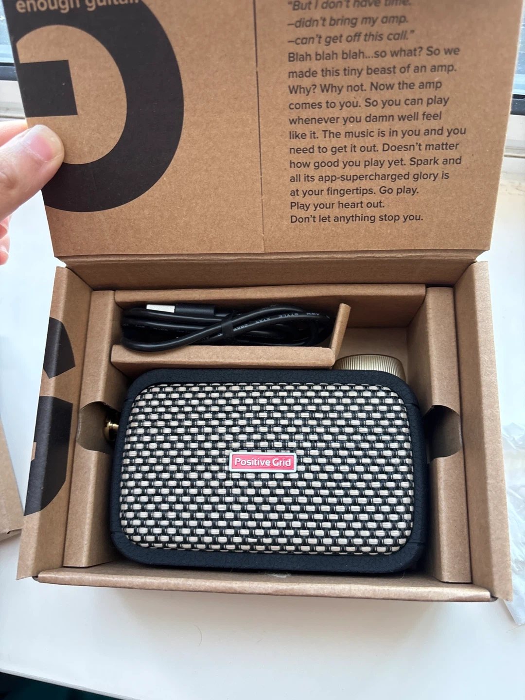 Positive Grid Spark GO Smart Guitar & Bass Amp. It's a compact, portable amp. Comes with charging cable. Brand new.