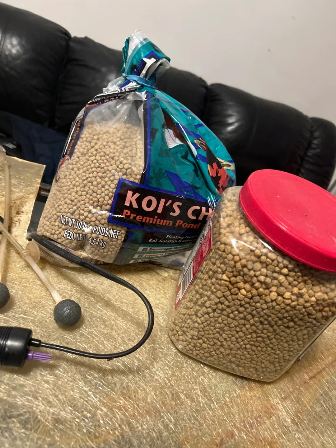This bundle includes an aquarium filter, submersible heater, and an air pump. It also comes with a 10 lb bag of Koi's Choice Premium Pond Floating Food and a jar of fish food. Everything you need to set up or maintain your aquatic environment!