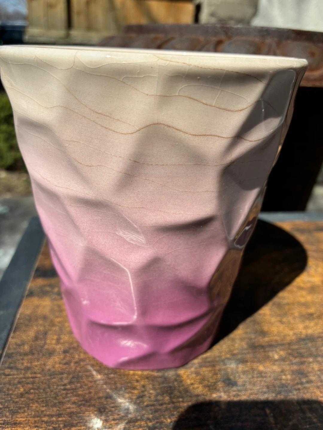 Pot flower plant succulent no drainage pink angled unique art deco some crazing Donlands O'Connor