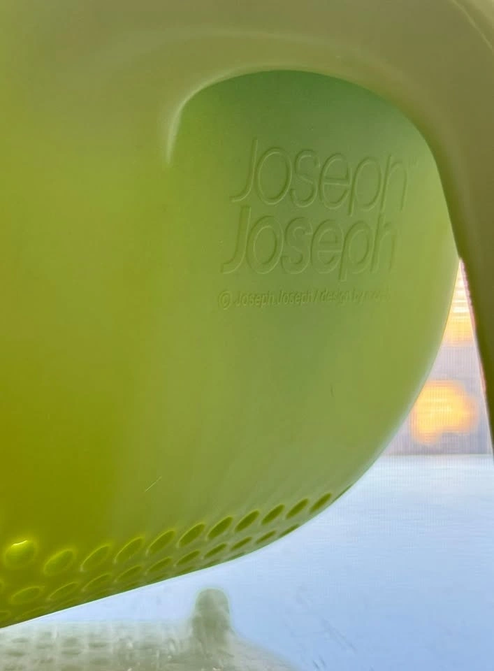 - Joseph Joseph Square Colander (Green) with an ergonomic vertical handle, easy-pour square corners, and a stable, space-saving design.
