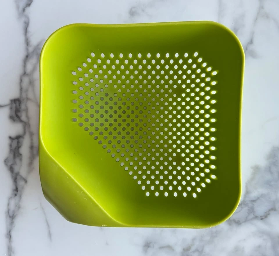 - Joseph Joseph Square Colander (Green) with an ergonomic vertical handle, easy-pour square corners, and a stable, space-saving design.