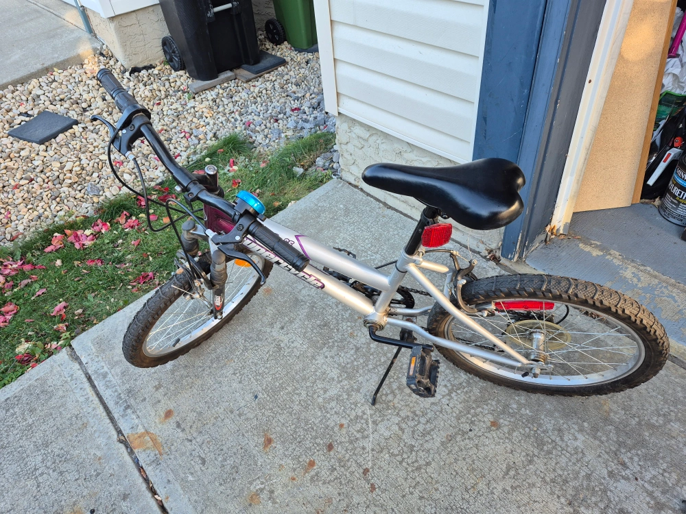 Selling a Supercycle Impulse bicycle. It is silver and purple in colour. The tires are in good condition and ready to ride!