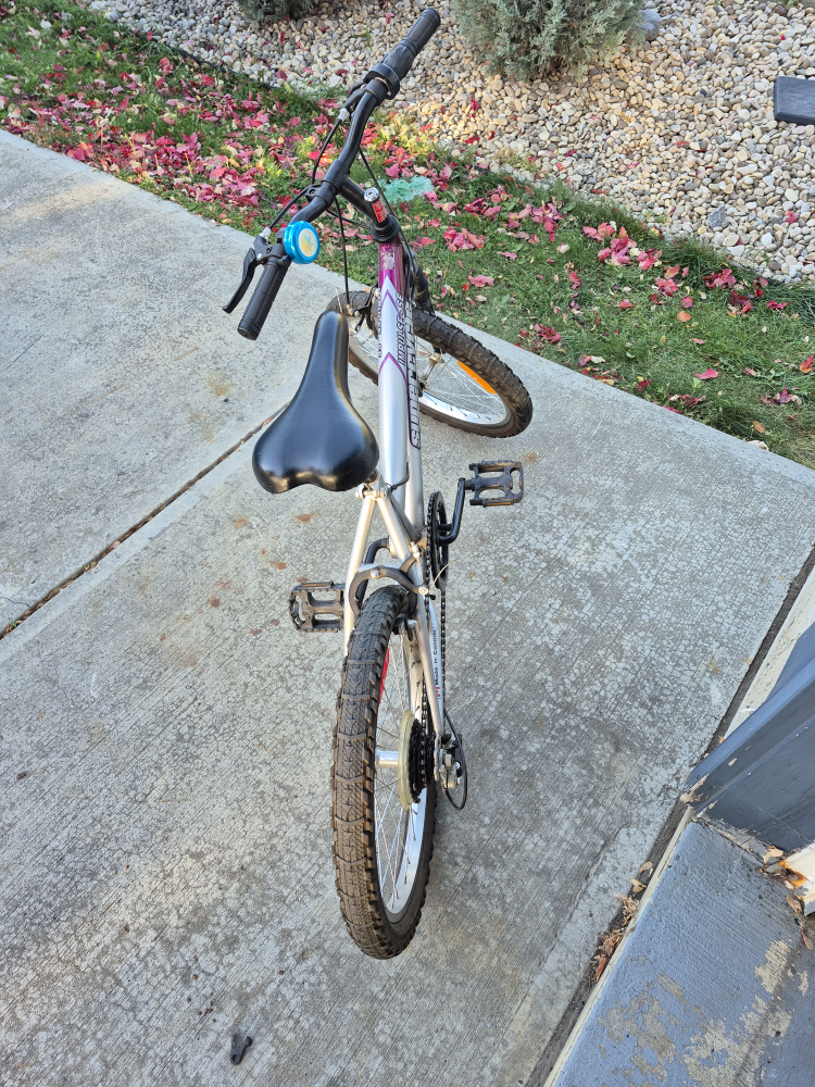 Selling a Supercycle Impulse bicycle. It is silver and purple in colour. The tires are in good condition and ready to ride!