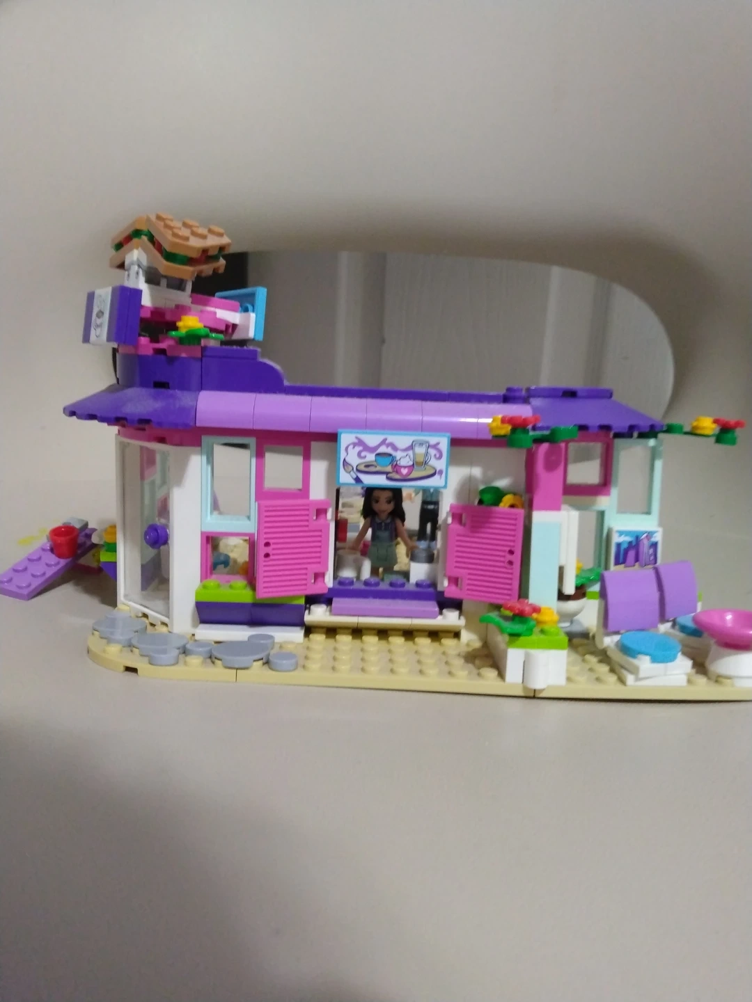 This is Emma's Art Cafe set from LEGO Friends. It includes Emma and Ethan minifigures. The set has 378 pieces and is designed for ages 6-12.