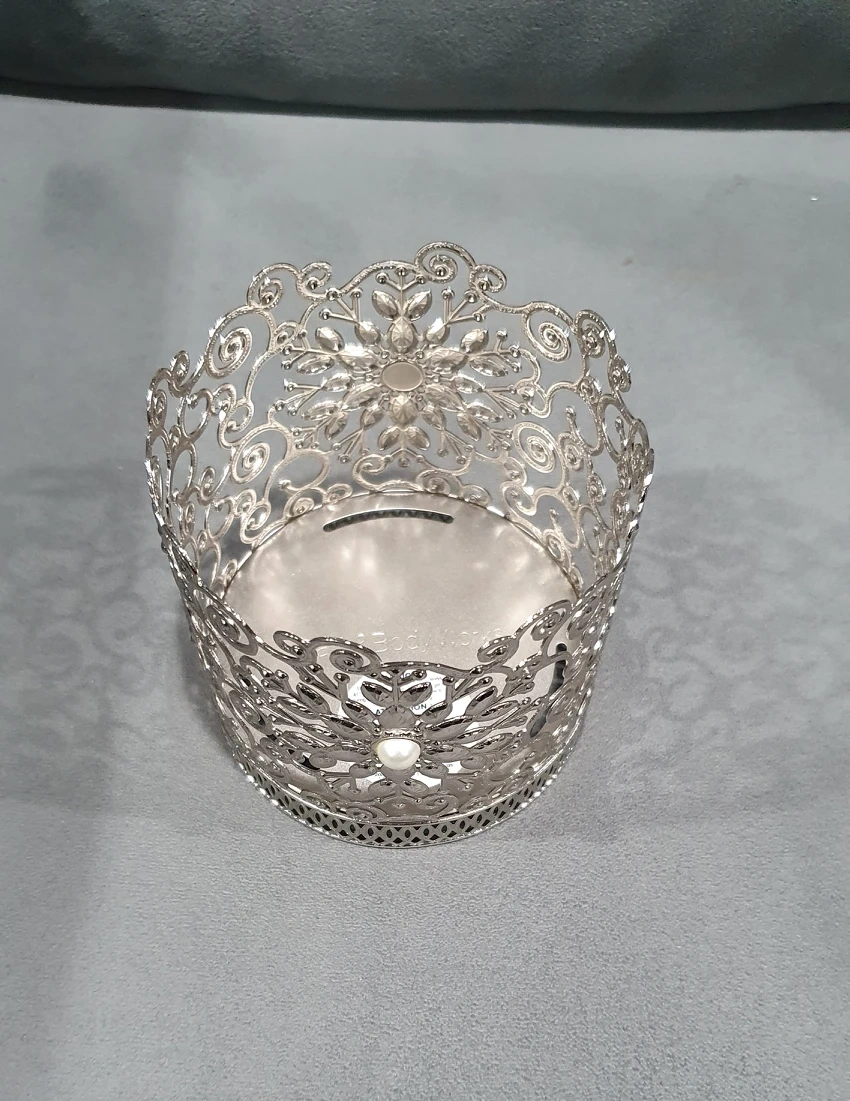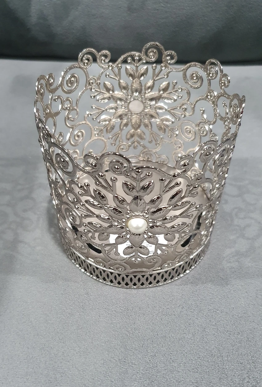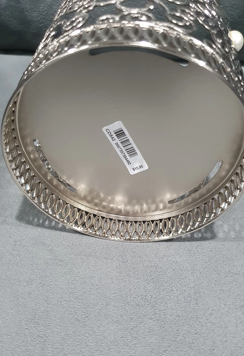 Silver candle stand with pearls and an exquisite design. Still new with price tag/sticker, selling for $9 instead of original price of $16.