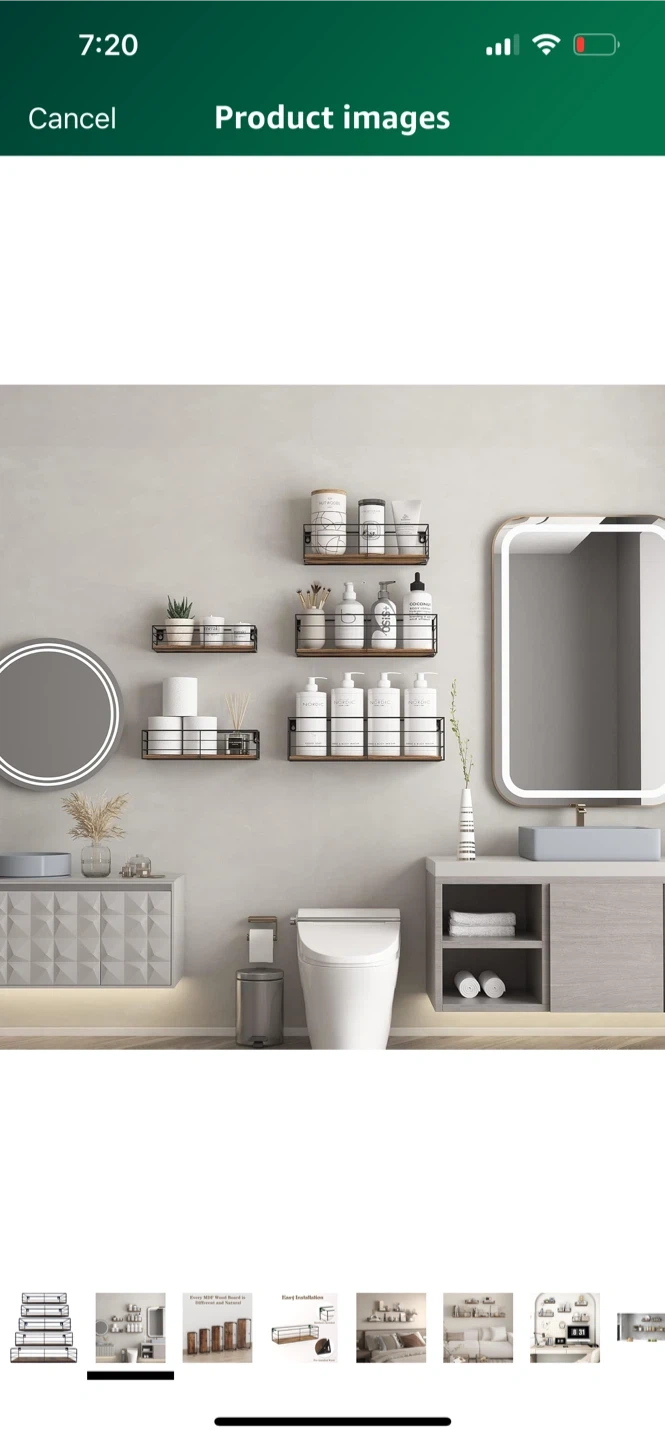 I'm selling a set of 5 CRUGLA floating shelves! They're perfect for adding some extra storage and style to your bathroom, kitchen, bedroom, living room, or office. The shelves are a nice brown colour and are made of MDF wood board. The dimensions are as follows: