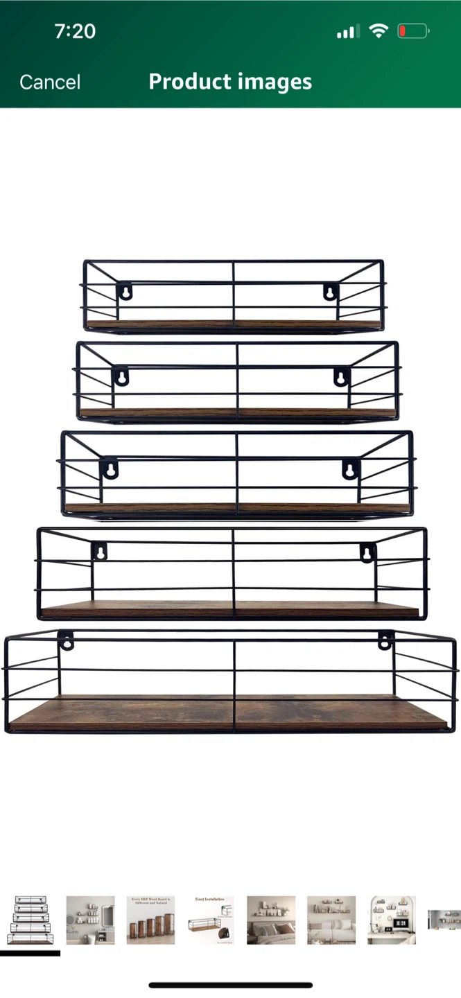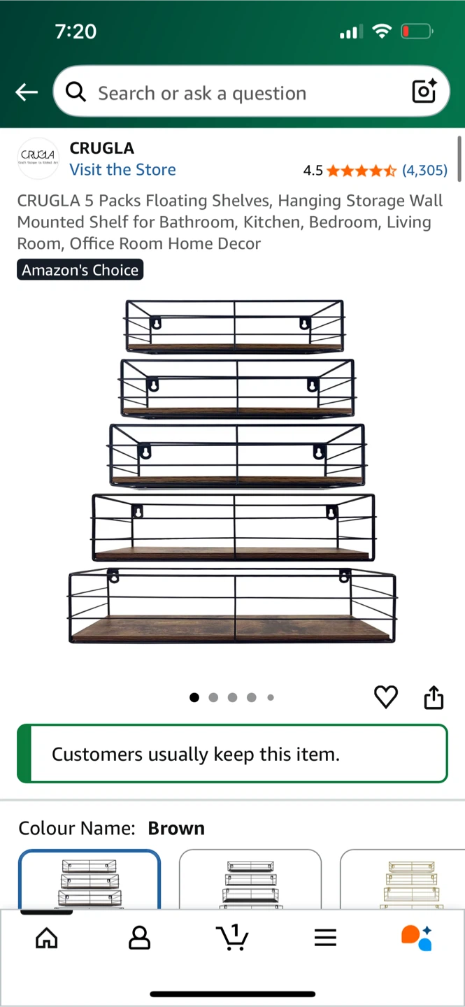 I'm selling a set of 5 CRUGLA floating shelves! They're perfect for adding some extra storage and style to your bathroom, kitchen, bedroom, living room, or office. The shelves are a nice brown colour and are made of MDF wood board. The dimensions are as follows:
