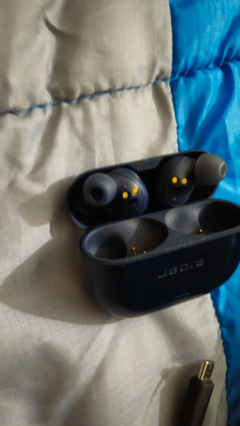 Jabra Elite 8 Active Gen 2 wireless earbuds in blue. These earbuds are designed for an active lifestyle. They come with a charging case and BT LE Cable for 3.5mm to Case for BT broadcast to Buds.