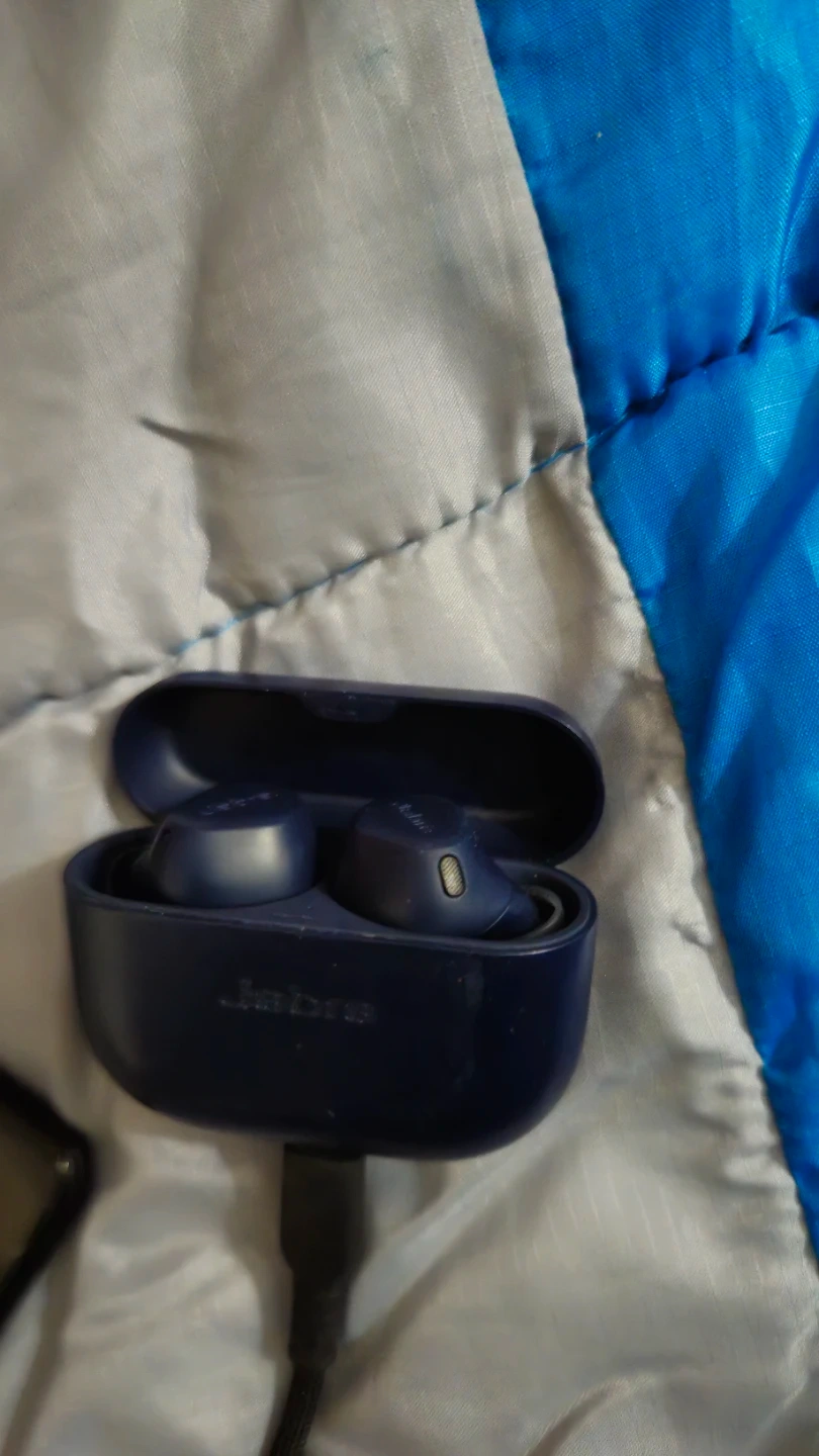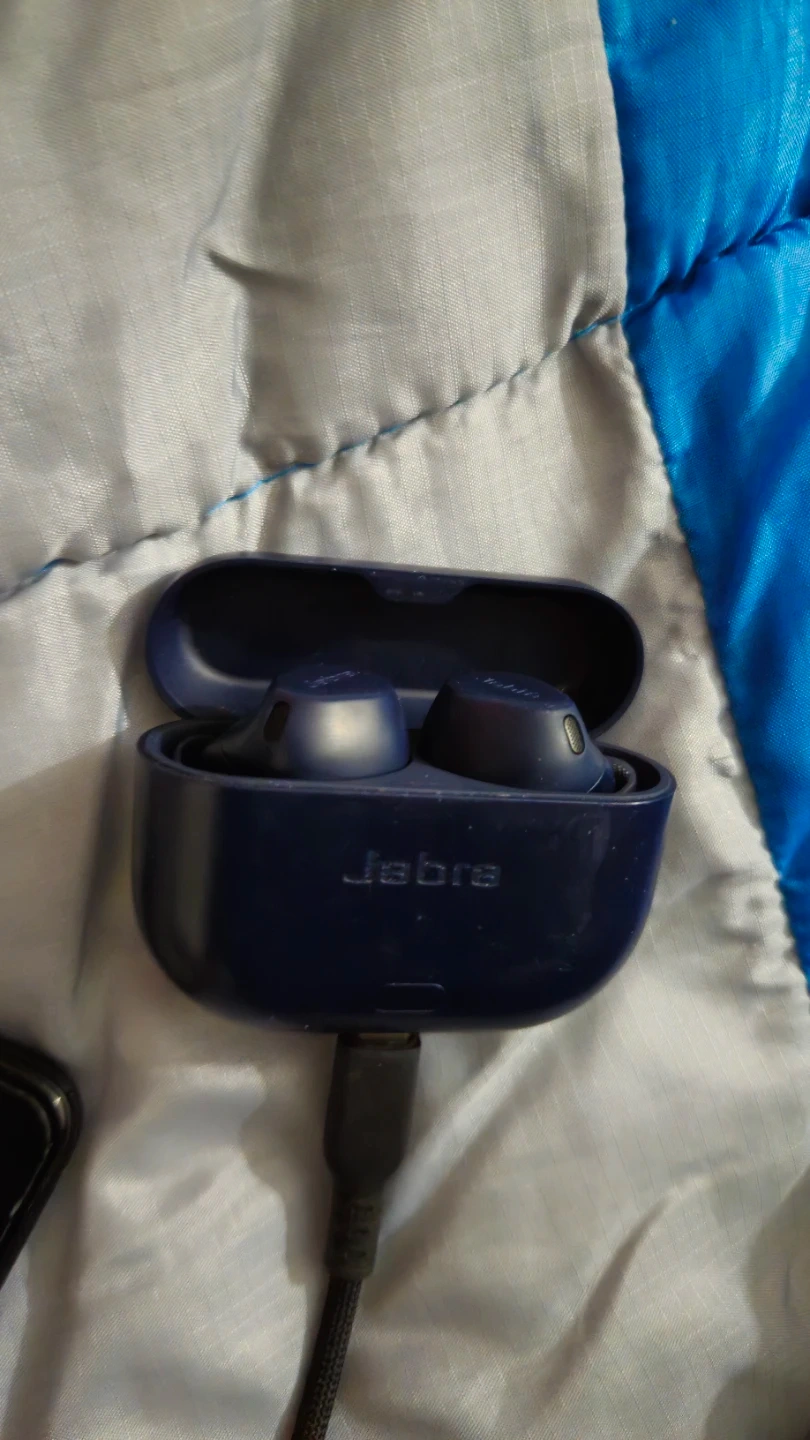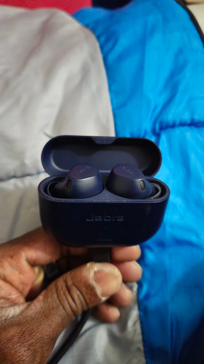 Jabra Elite 8 Active Gen 2 wireless earbuds in blue. These earbuds are designed for an active lifestyle. They come with a charging case and BT LE Cable for 3.5mm to Case for BT broadcast to Buds.