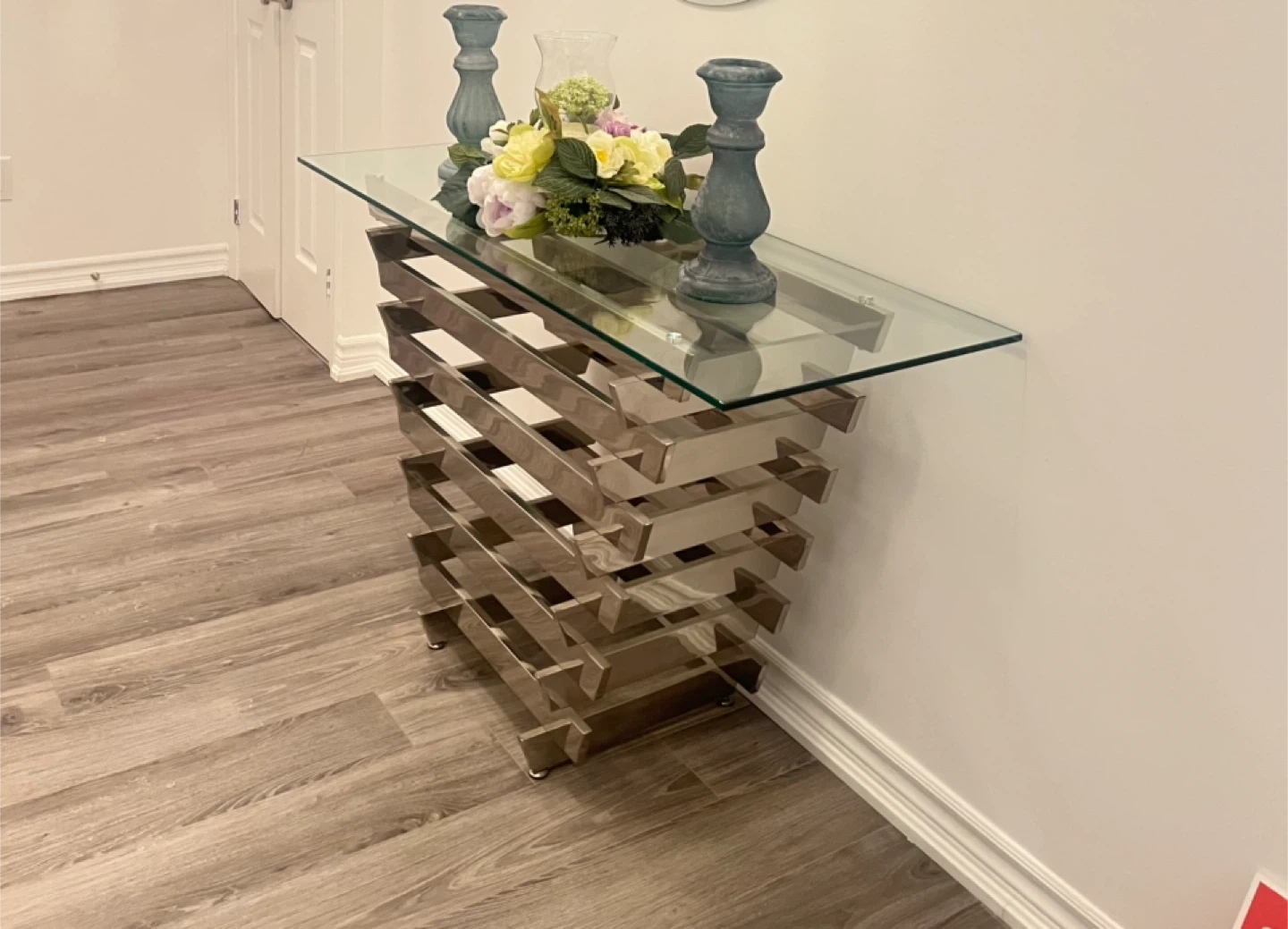 Glass Top Console Table with Stainless Steel Base