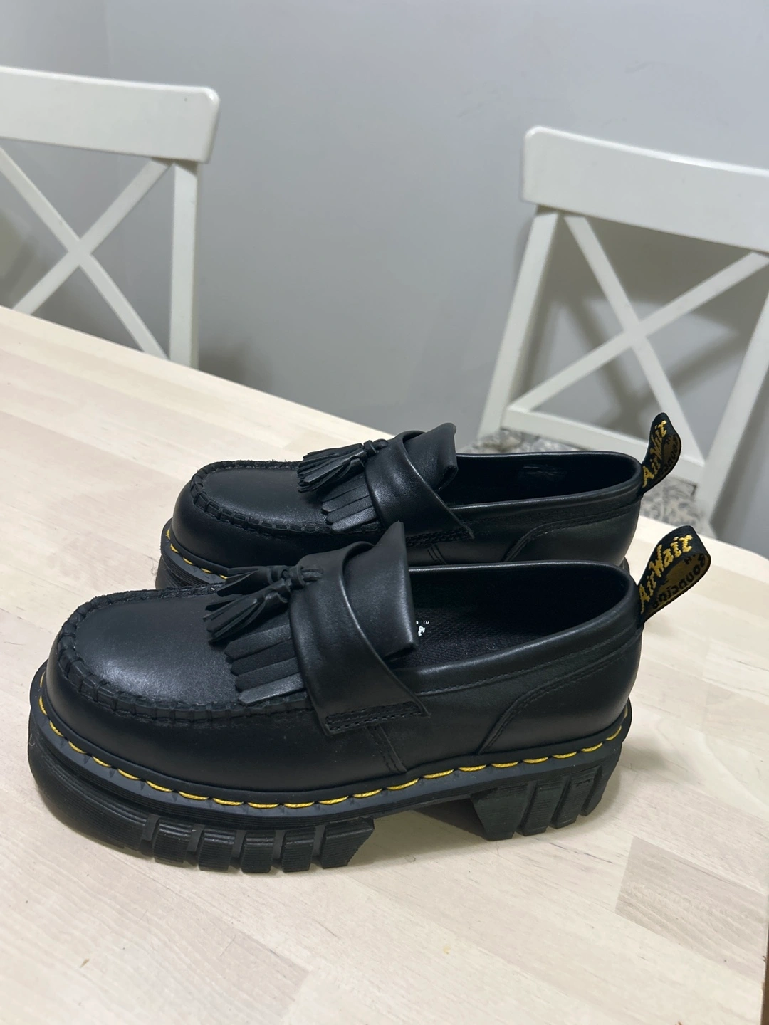 Never worn Dr Martens Black leather loafers. Platform sole. Fringed detail. They are size 7 but fit a little big. Pick up Commercial drive.