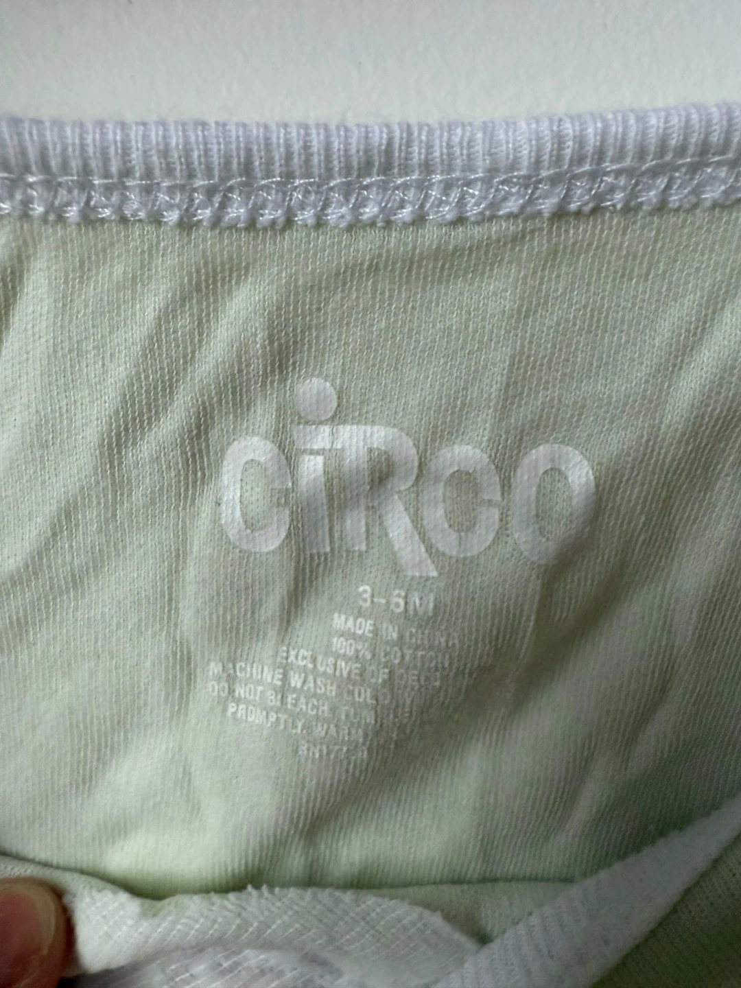 Selling a cute Circo baby bodysuit in size 3-6M! It's a light green color with a sweet little sheep design on the front. Made of 100% cotton, so it's soft and comfy for your little one