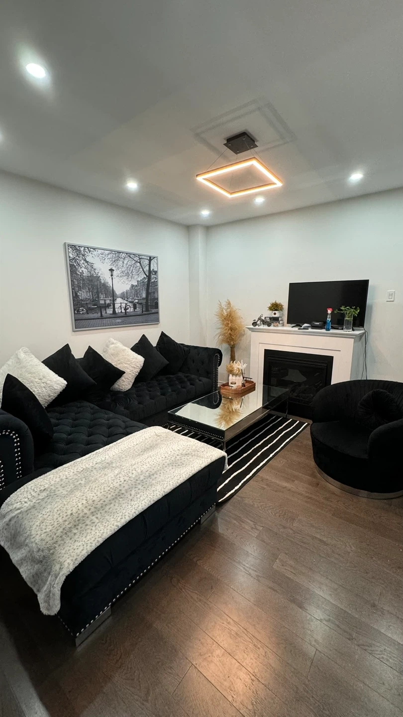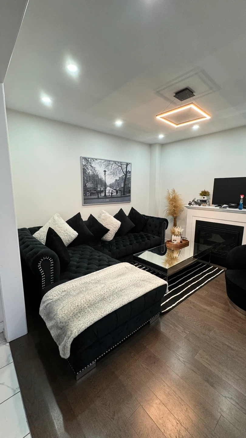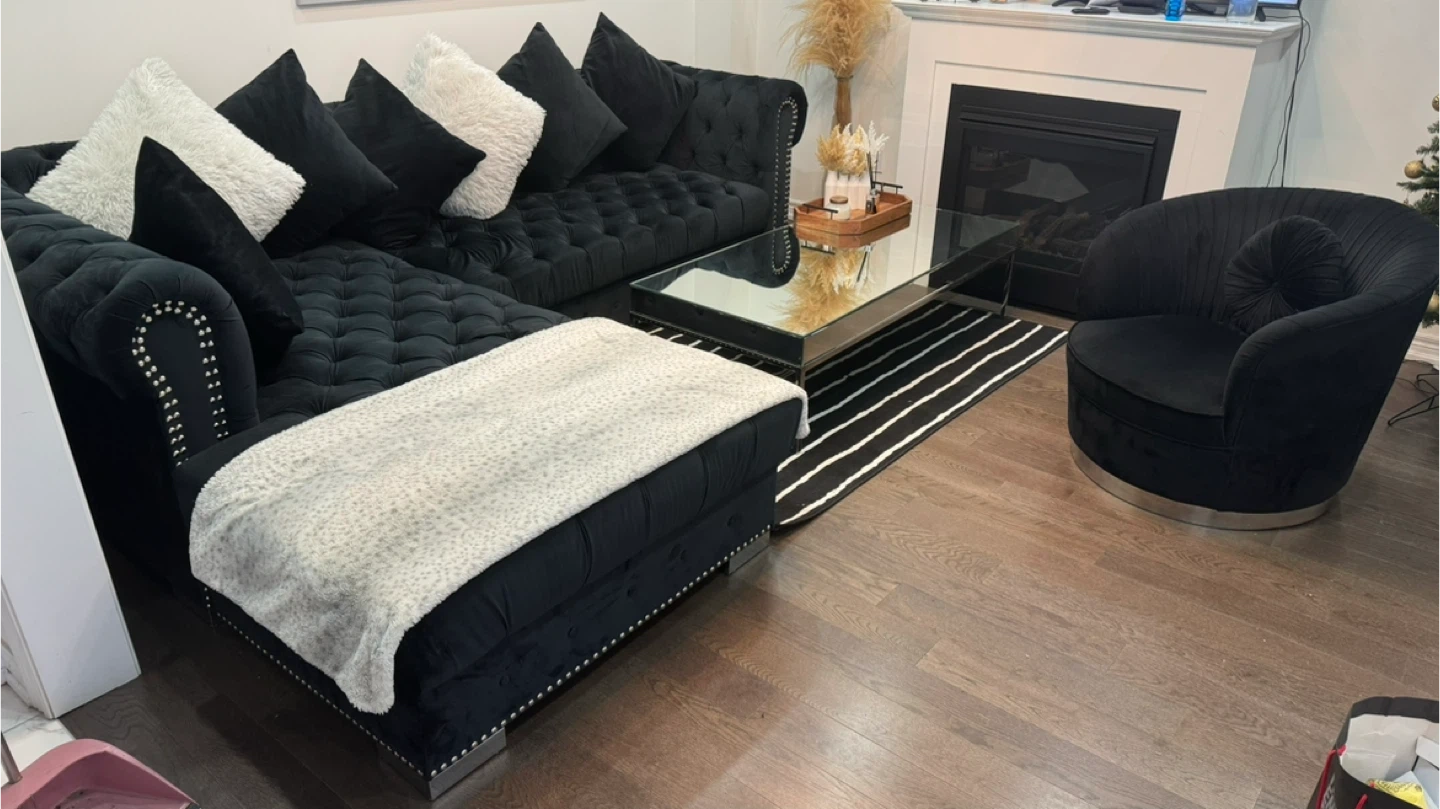 Black Velvet Tufted Sectional Sofa with Silver Studs